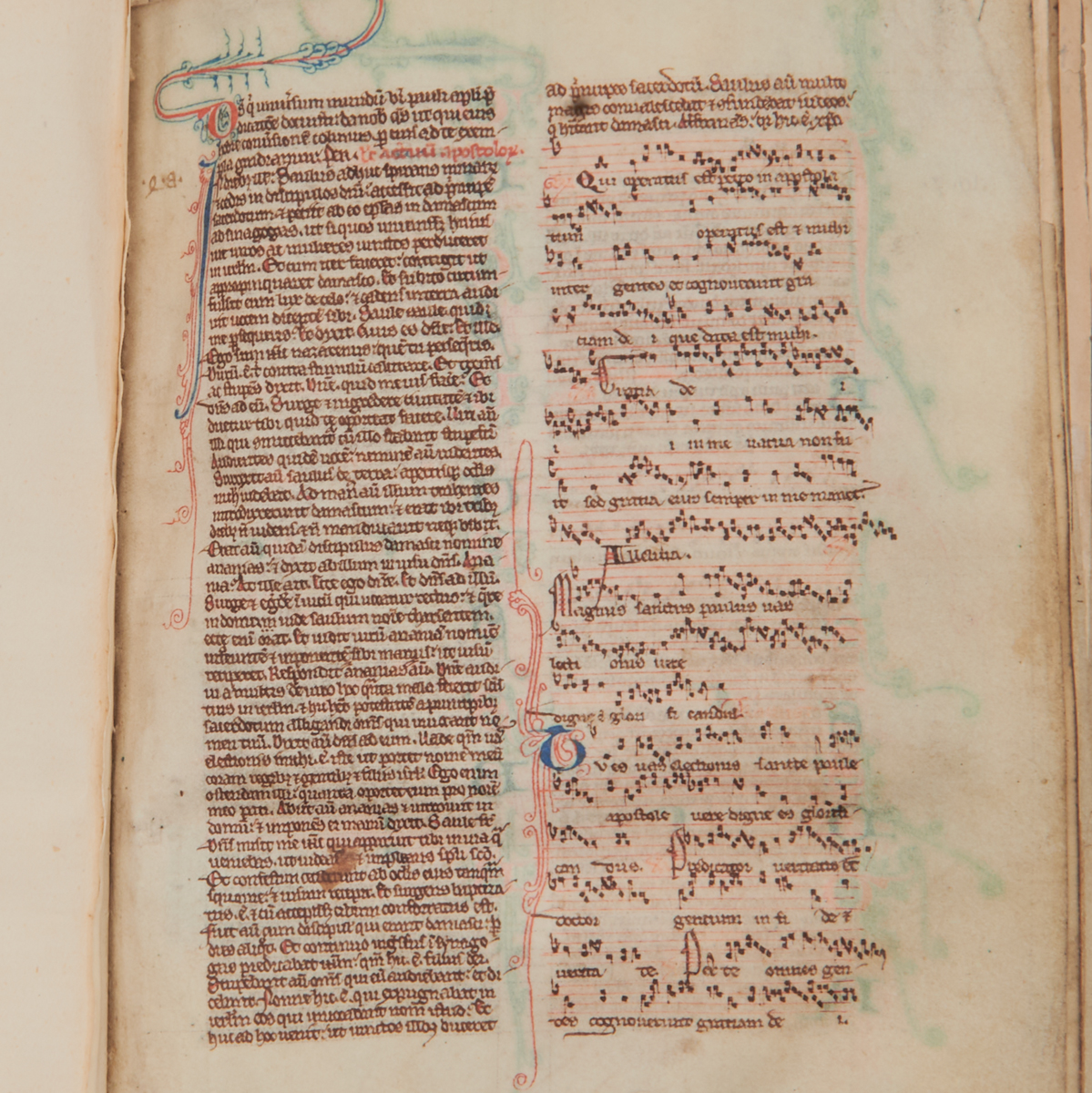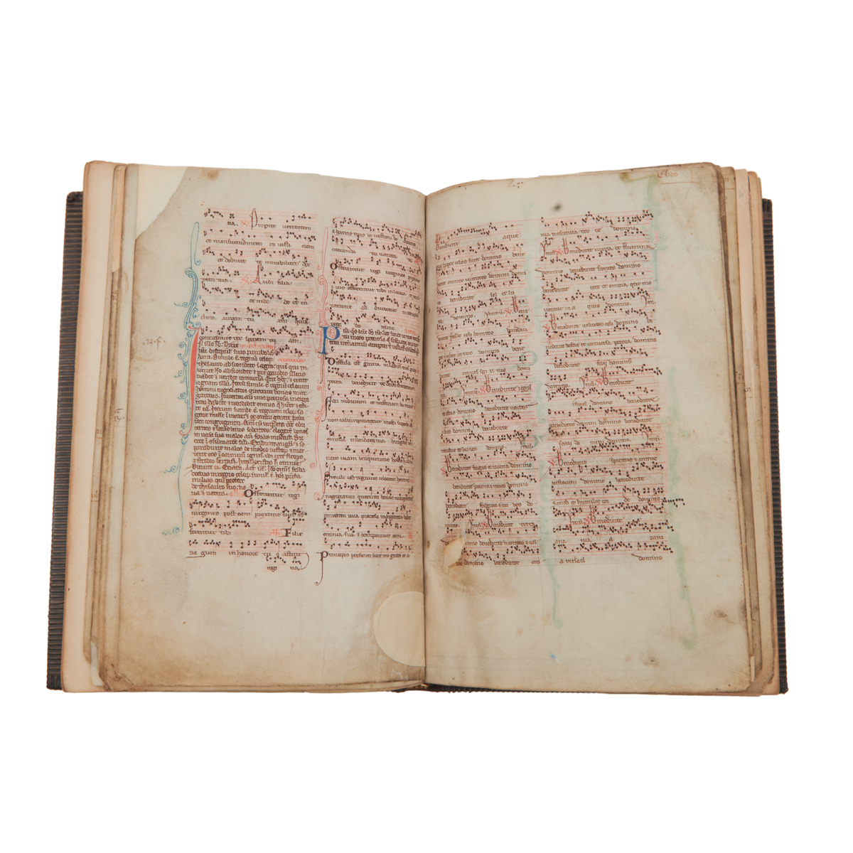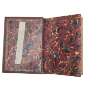 15 vellum leaves in later tooled calf leather binding minute and fine penwork, illuminated accents throughout including some figural.