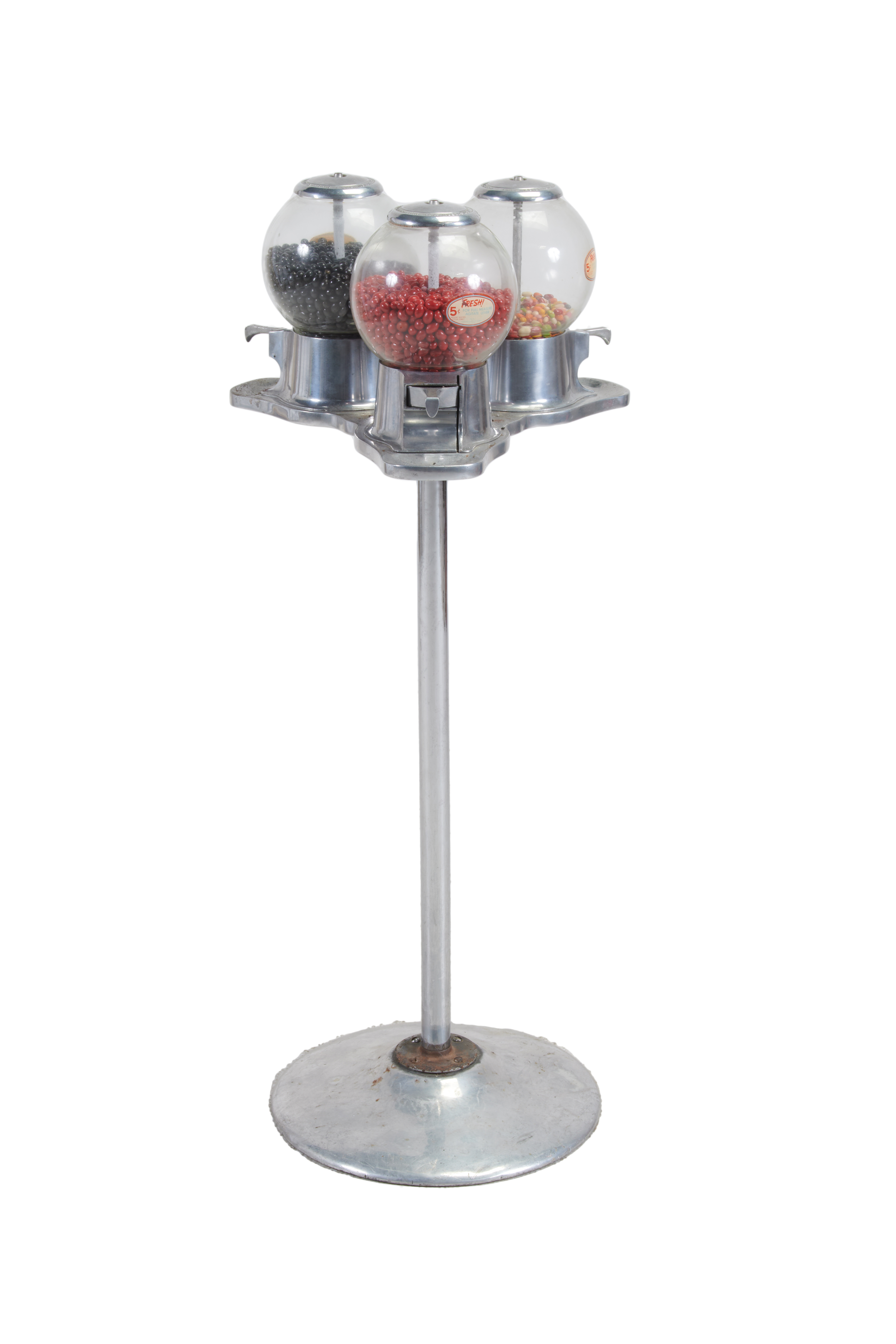 Condition: Some dulling and wear to chromed finish. Fading to stickers. Filled with candy.