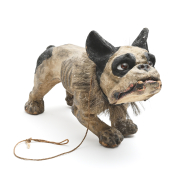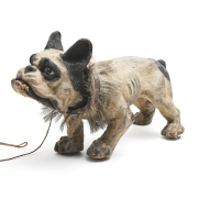 Attributed to Roullet Deschamps barking bulldog with pull-chain, on casters.
