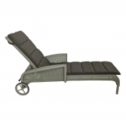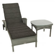 Approximate dimensions: Chair 35 high x 30 1/2 wide x 64 inches deep, table 16 high x 24 inches wide and deep.