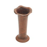 The everted mouth with ruffled rim, slightly tapered cylindrical body tapering to round foot.