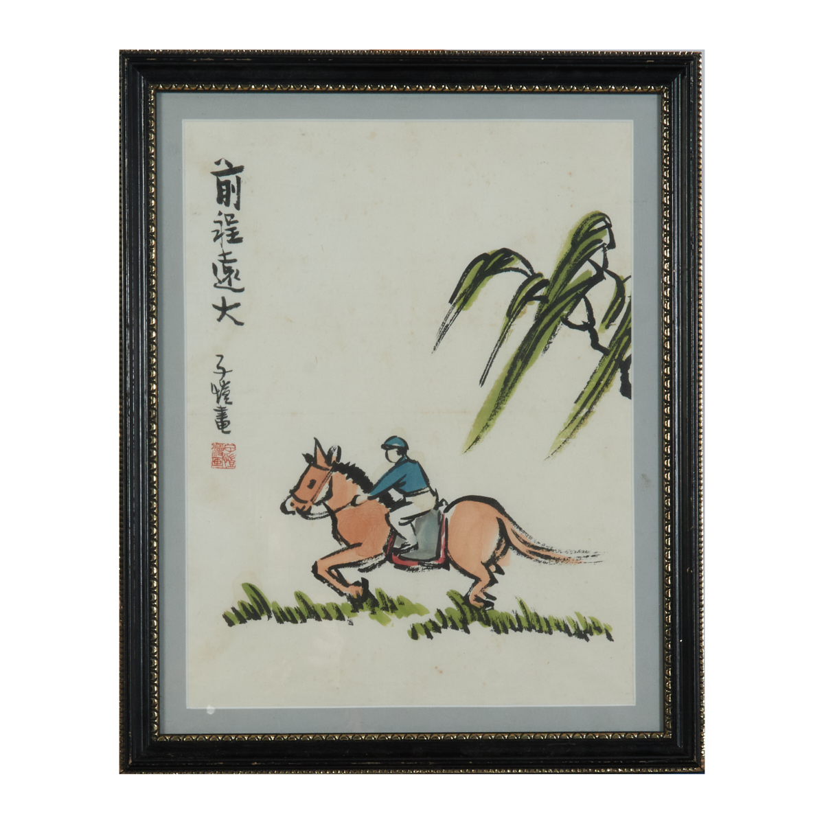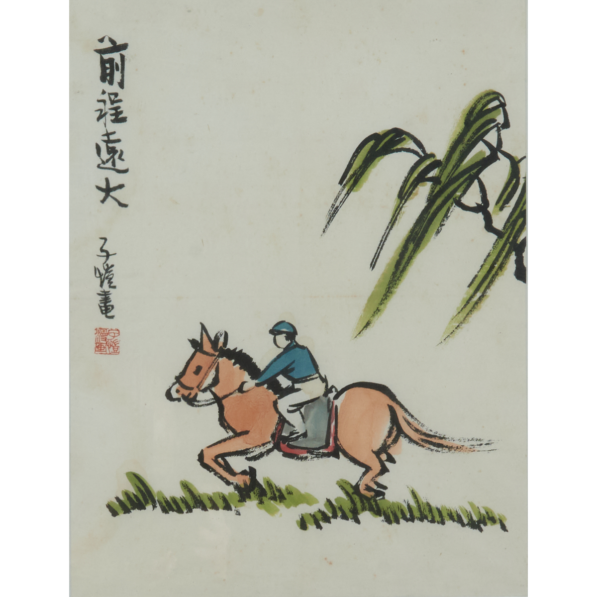 Ink and color on paper, titled and signed Zikai, with one artist seal.