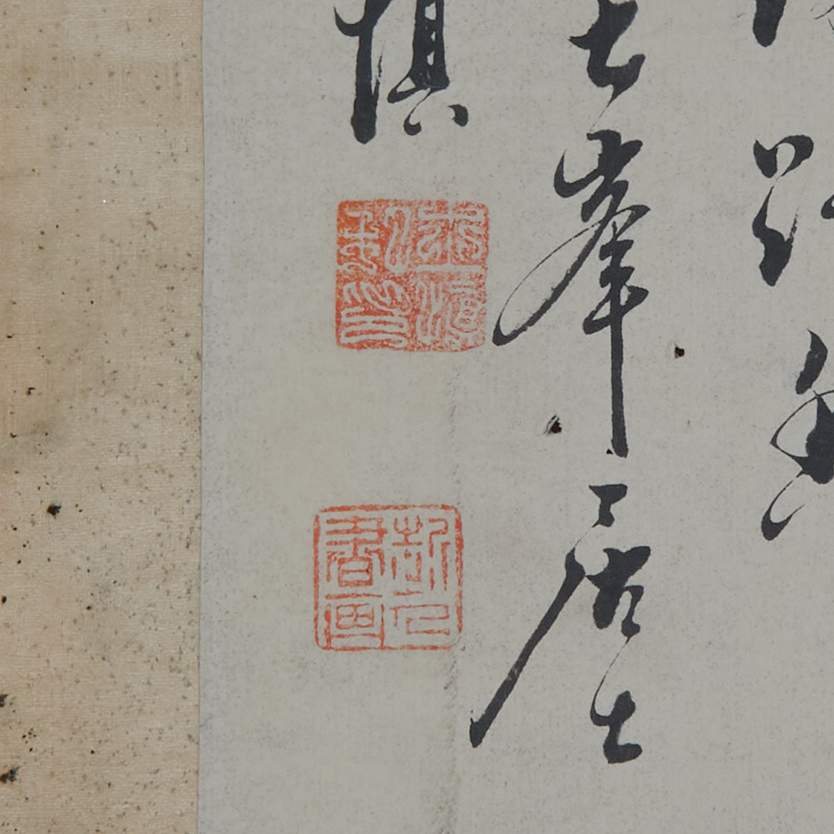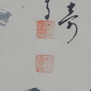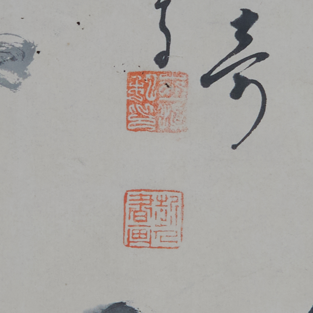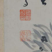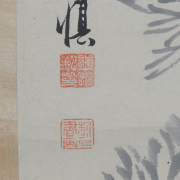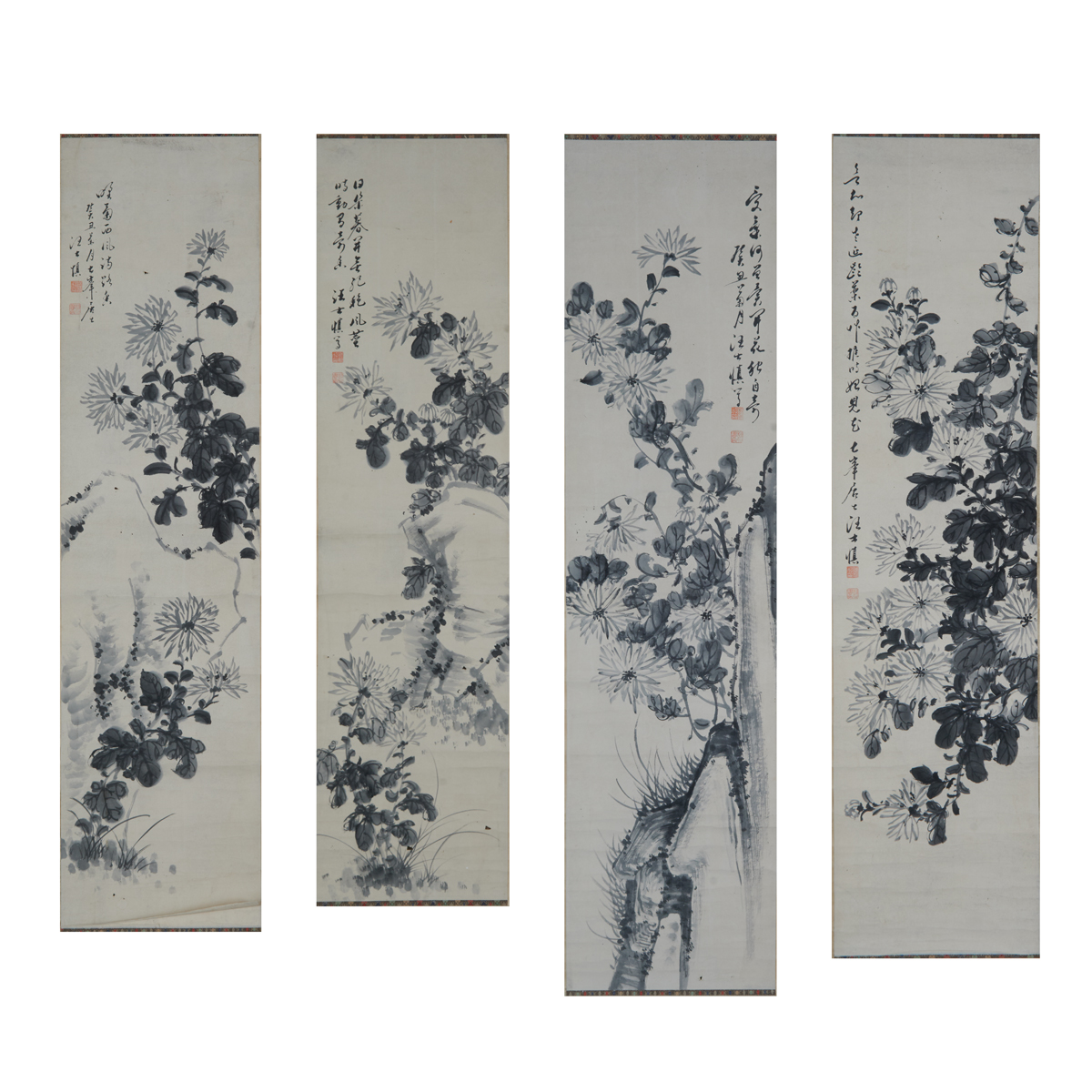 A set of four scrolls, ink on paper, depicting varying chrysanthemum, each signed with artist name and two stamps.
