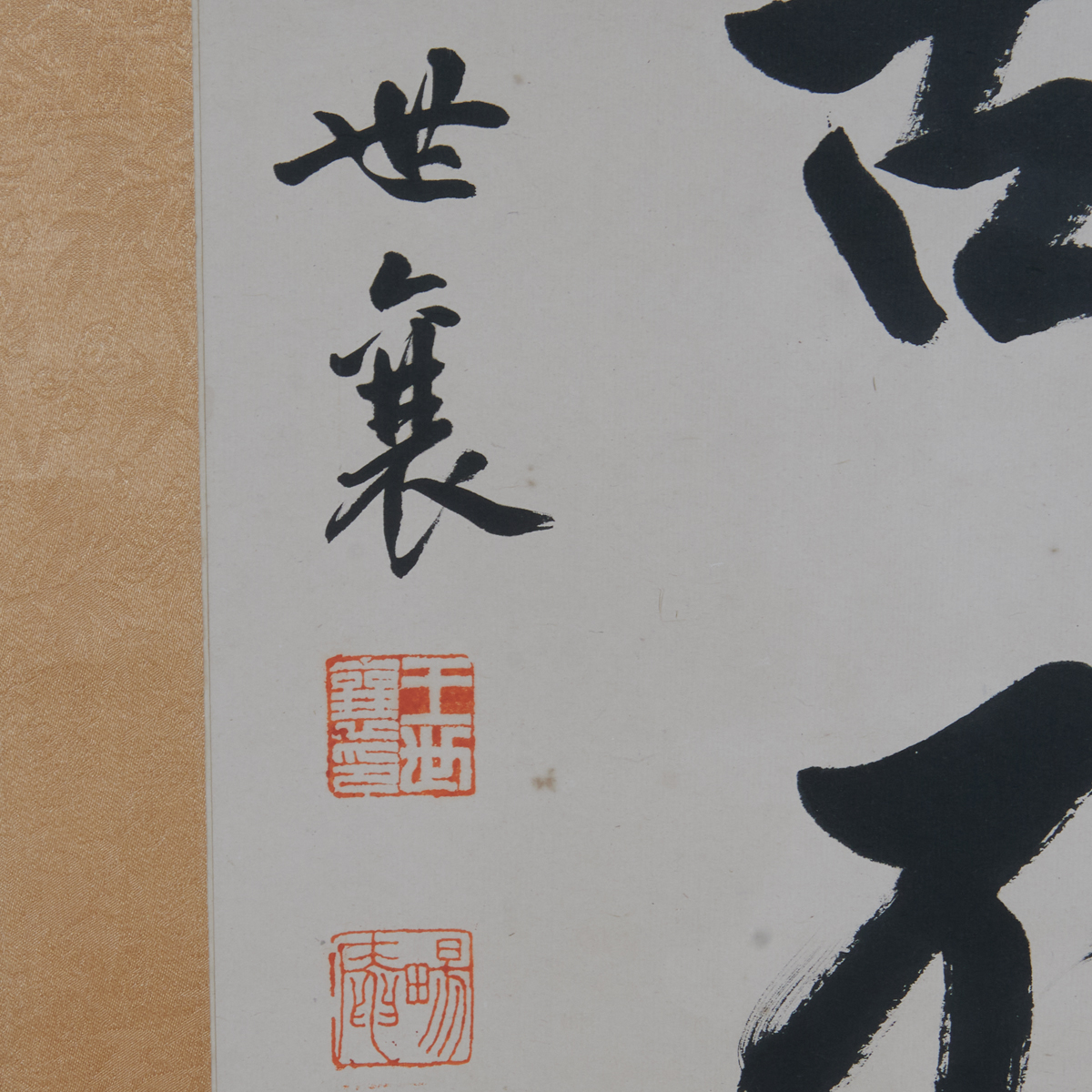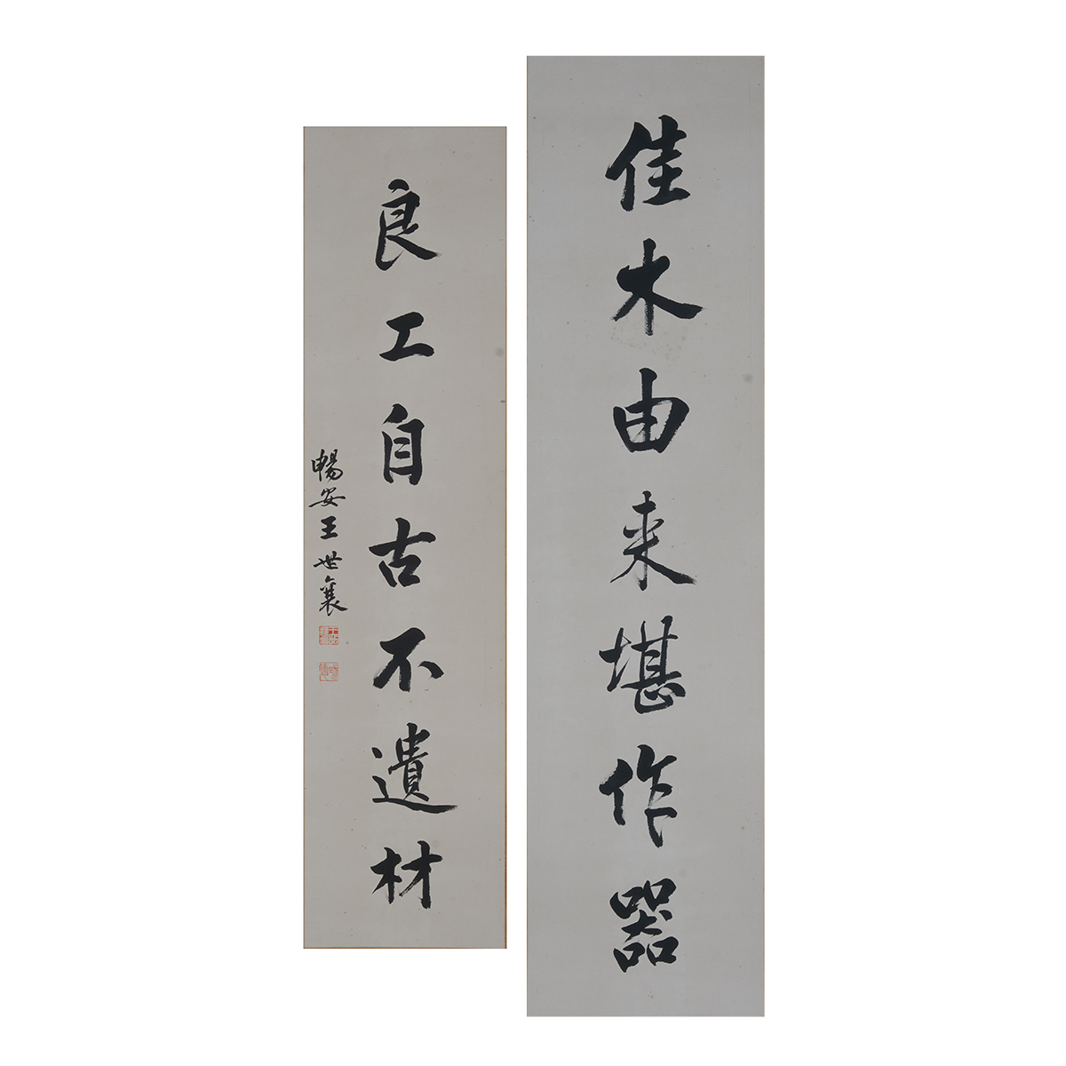 Ink on paper, calligraphy in Regular Script, signed with artist name and with two artist seals.