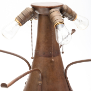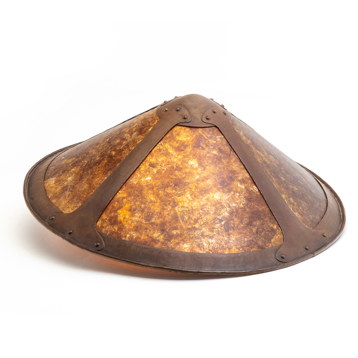 Conical shade with mica style panels, the tapered base with four lights and four support arms for the shade.