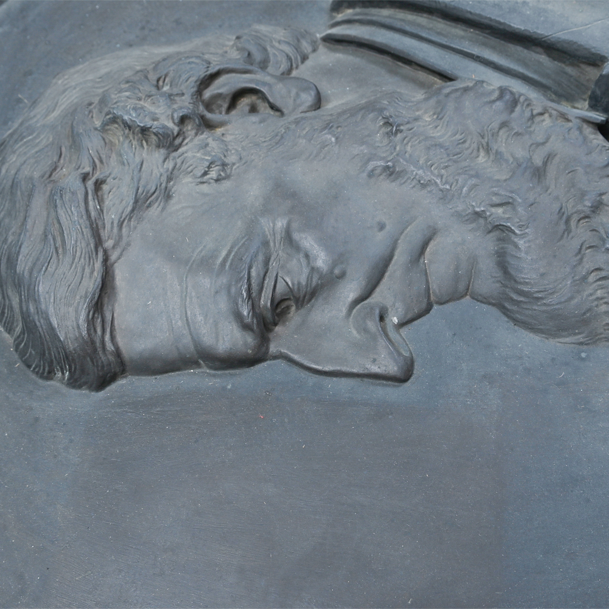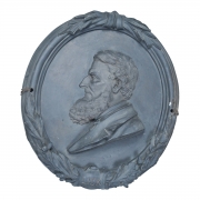Profile bust in relief within oval wreath frame, LICK to the bottom.