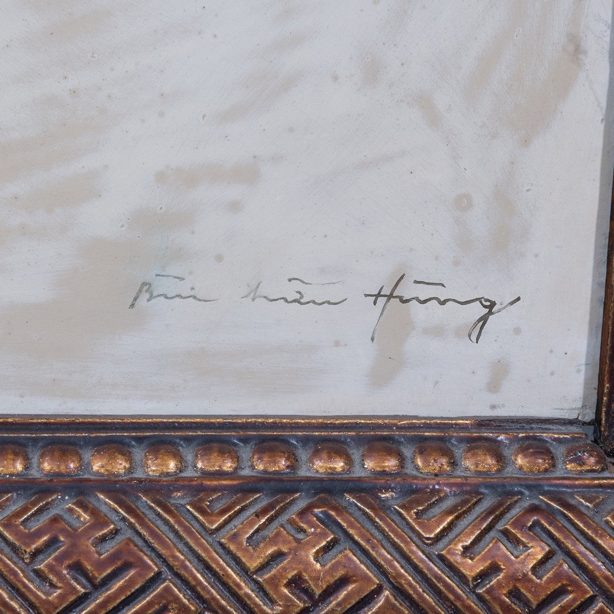 Notes: This lot includes a photo of the painting and a book called Bui Huu Hung, a Novel Tradition 1999, Apricot Gallery. Frame has wear, approximate dimensions - frame: 55 3/4 x 55 1/2 inches.