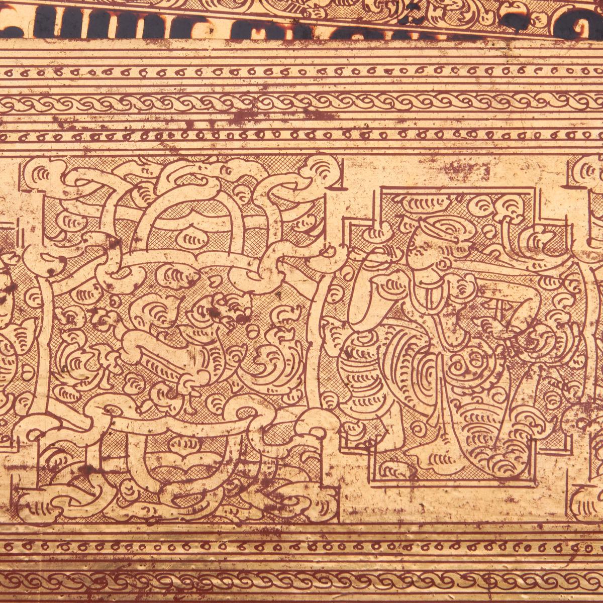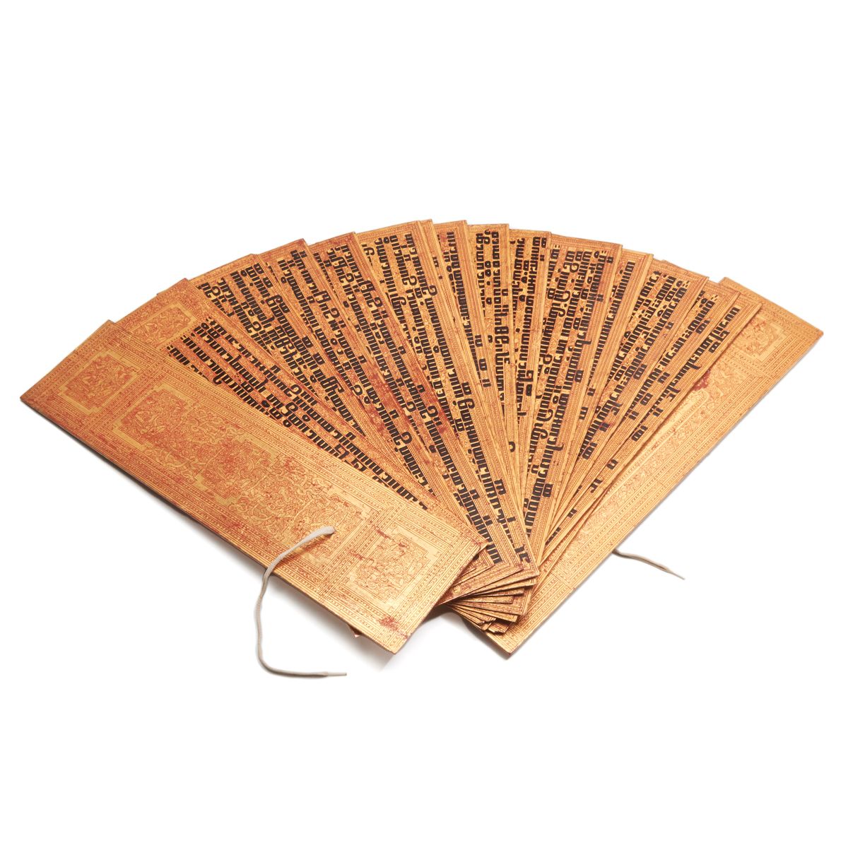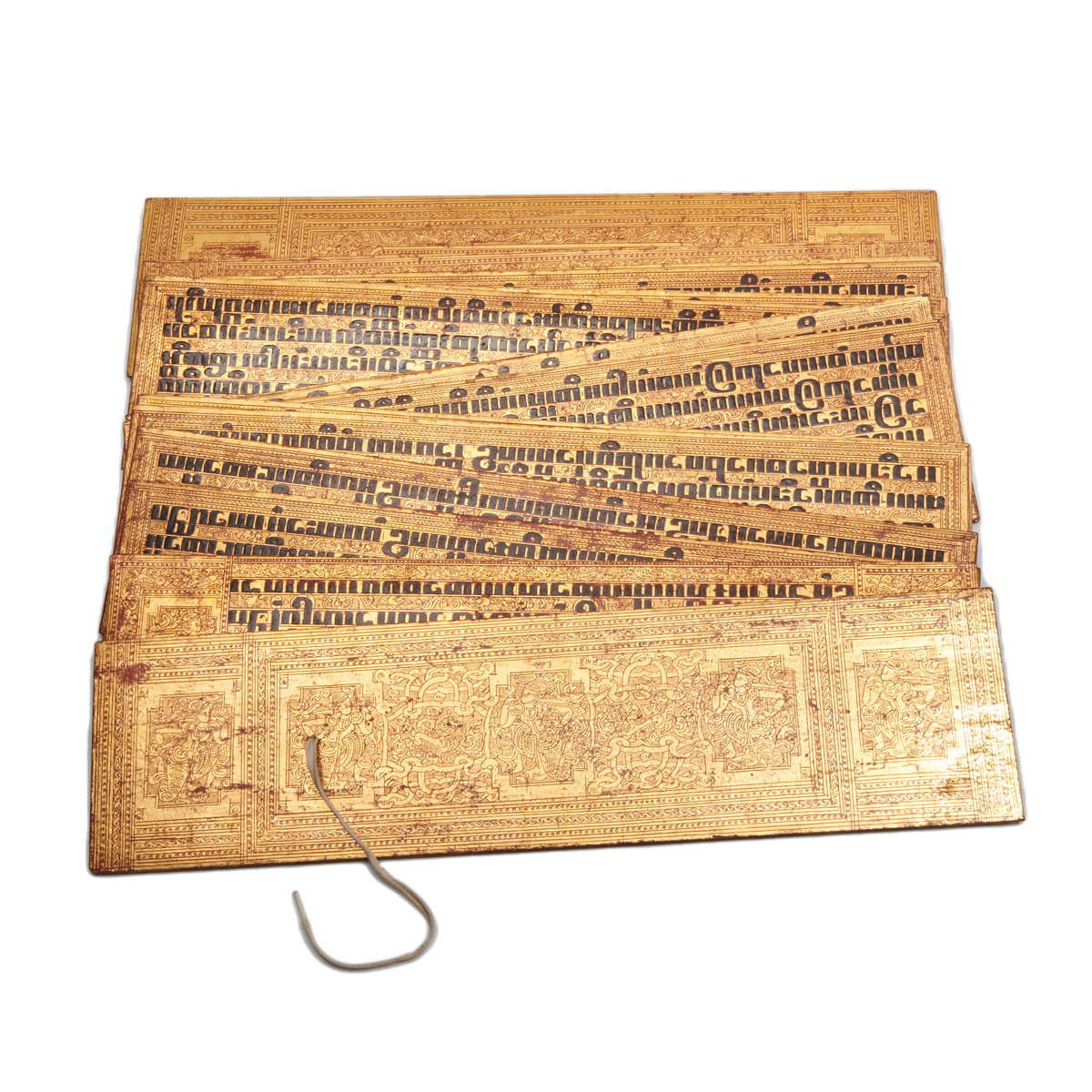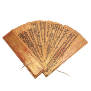 Comprised of two lacquered wooden covers and sixteen double-sided pages with black, red and gold lacquer.