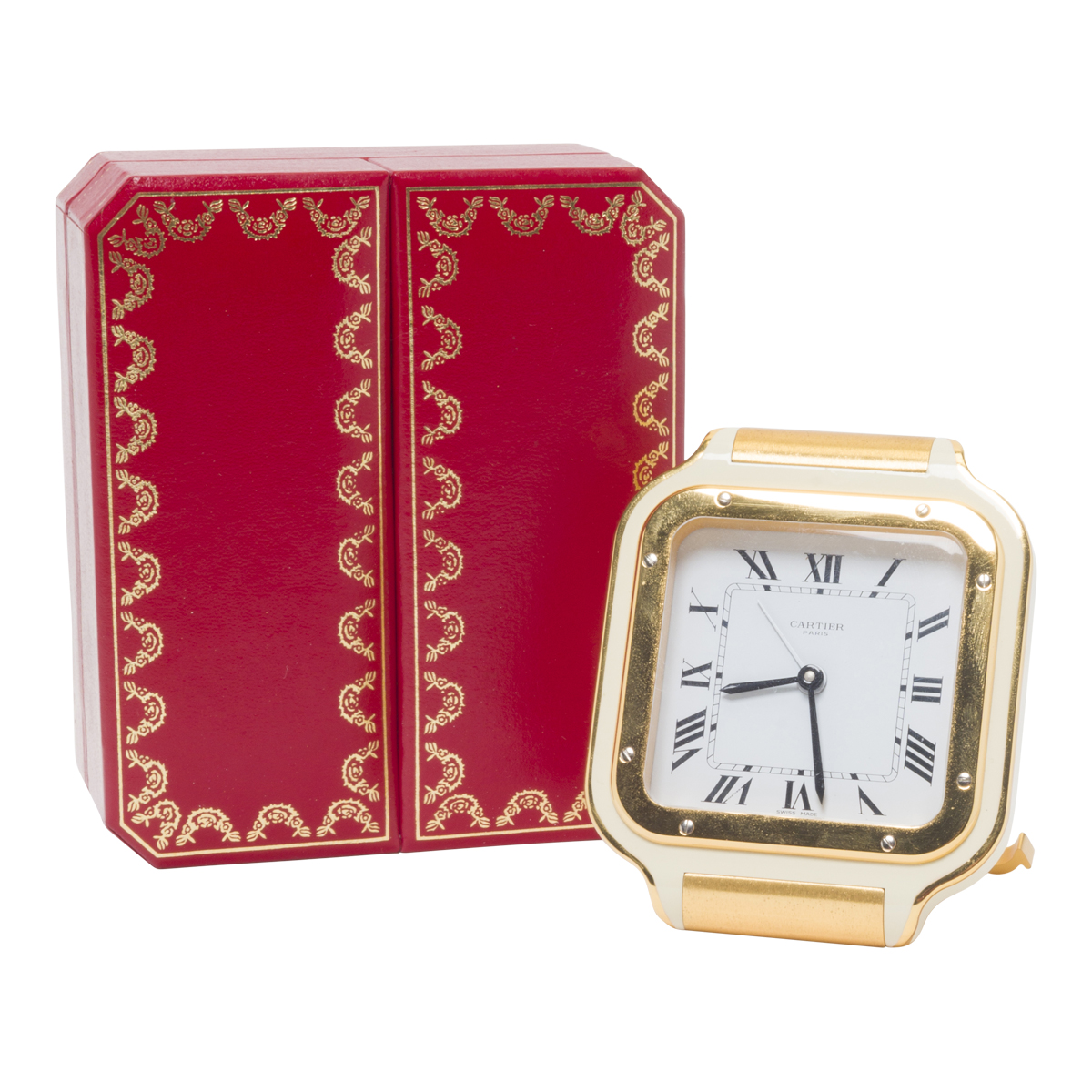 In the form of an oversized wristwatch in original box.