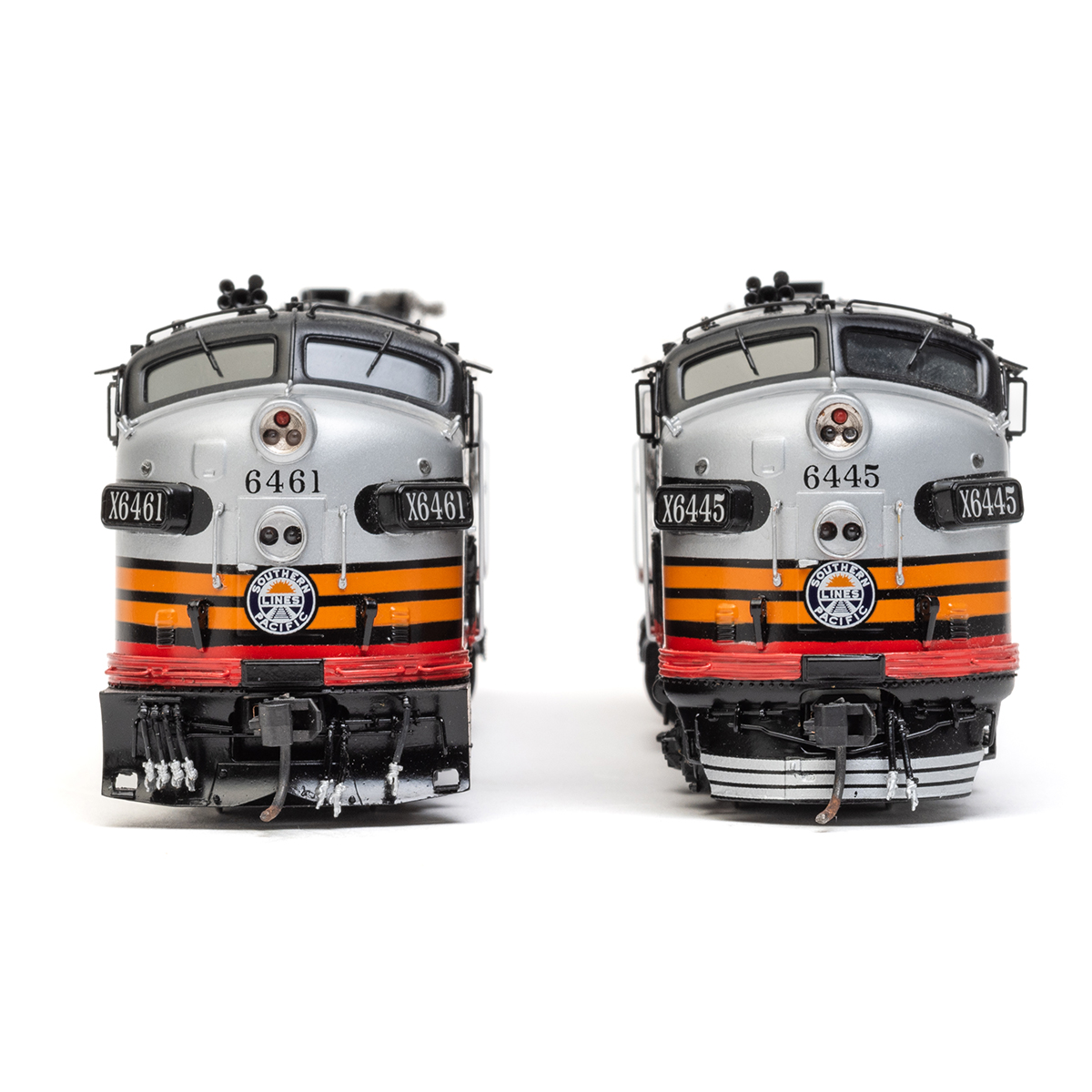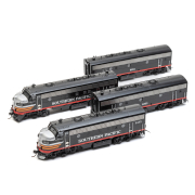 Label to box reads Challenger Imports Ltd., SOUTHERN PACIFIC, EMD FP7a/F7B/F7B/F7A Set, Passenger Service, Factory Painted, Catalog 2383.1.