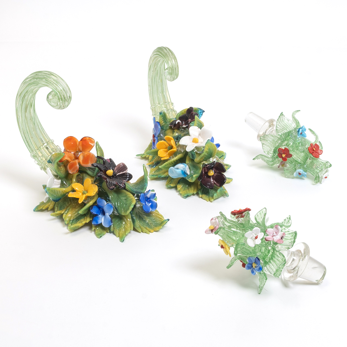 Condition: Minor surface wear overall, candlesticks show use. Some loss and repair to encrusted flowers and leaves.