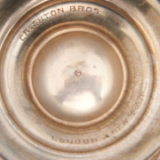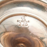 Condition: Some wear and tarnish throughout. Compote with significant bends to bowl. Some other shallow dents.