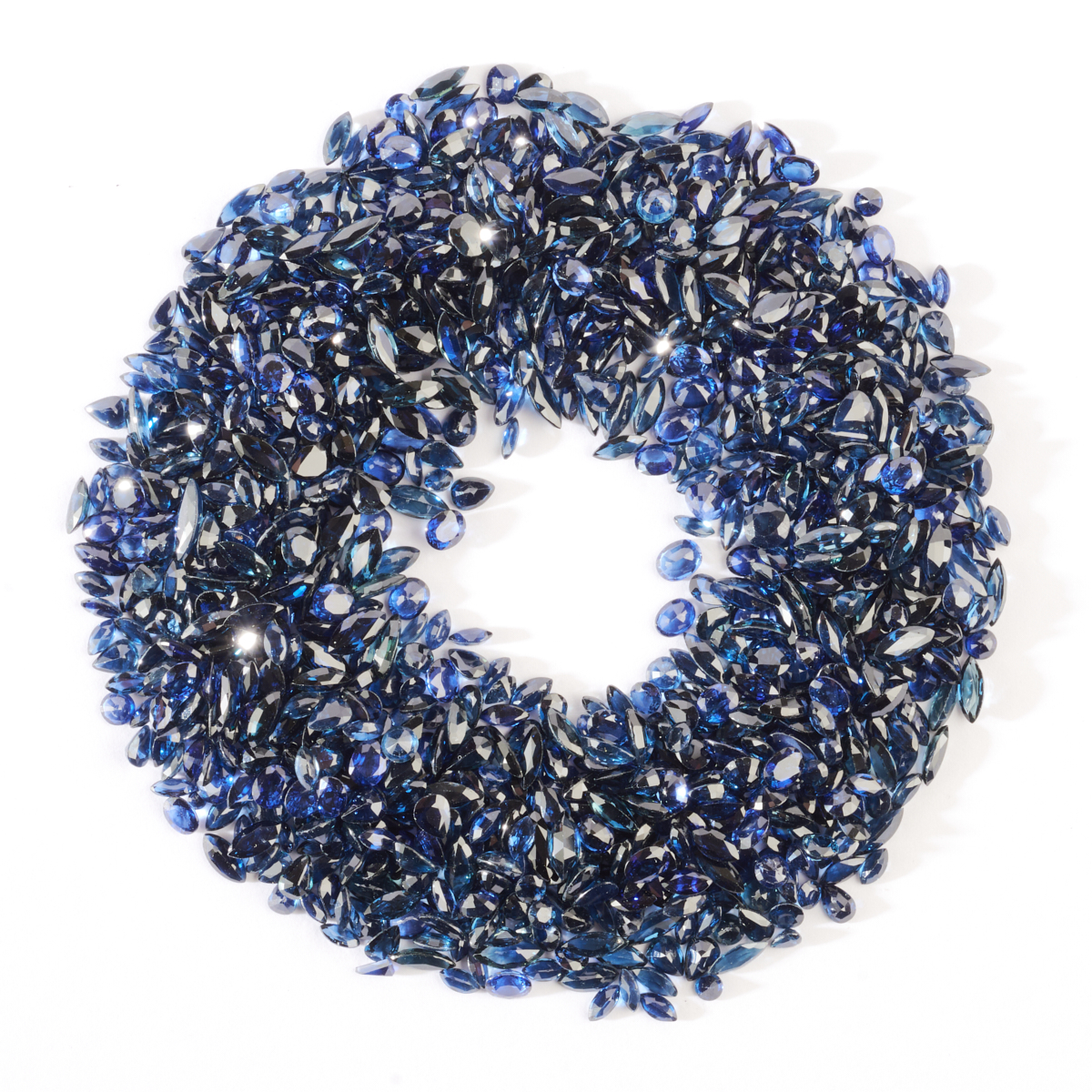 Including round-cut, pear-cut, marquise-cut and oval-cut sapphires in varying sizes and weighing a total of approximately 362.00 cttw.
