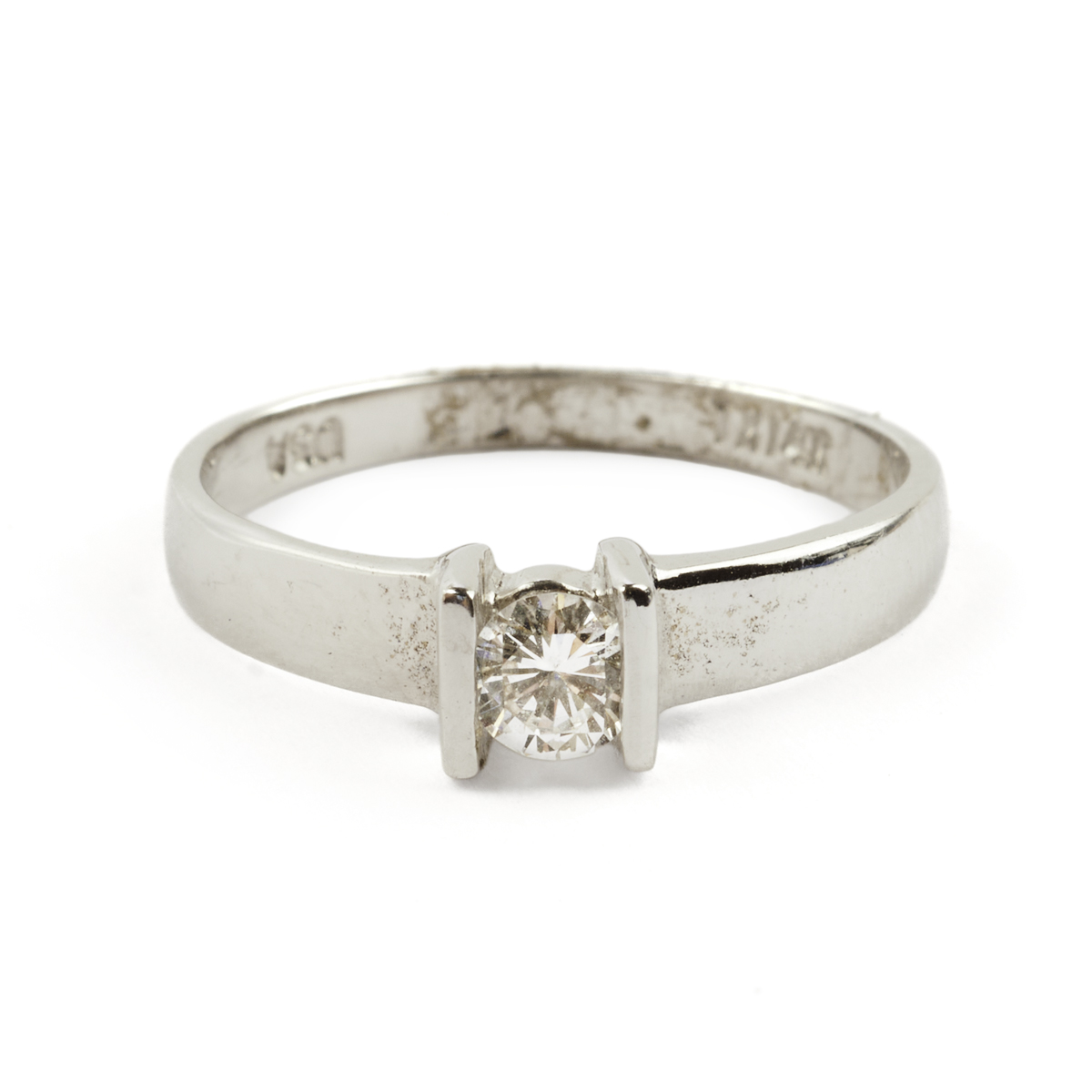 Featuring one full-cut diamond weighing approximately 0.25 ct., set in a 14k white gold mounting.