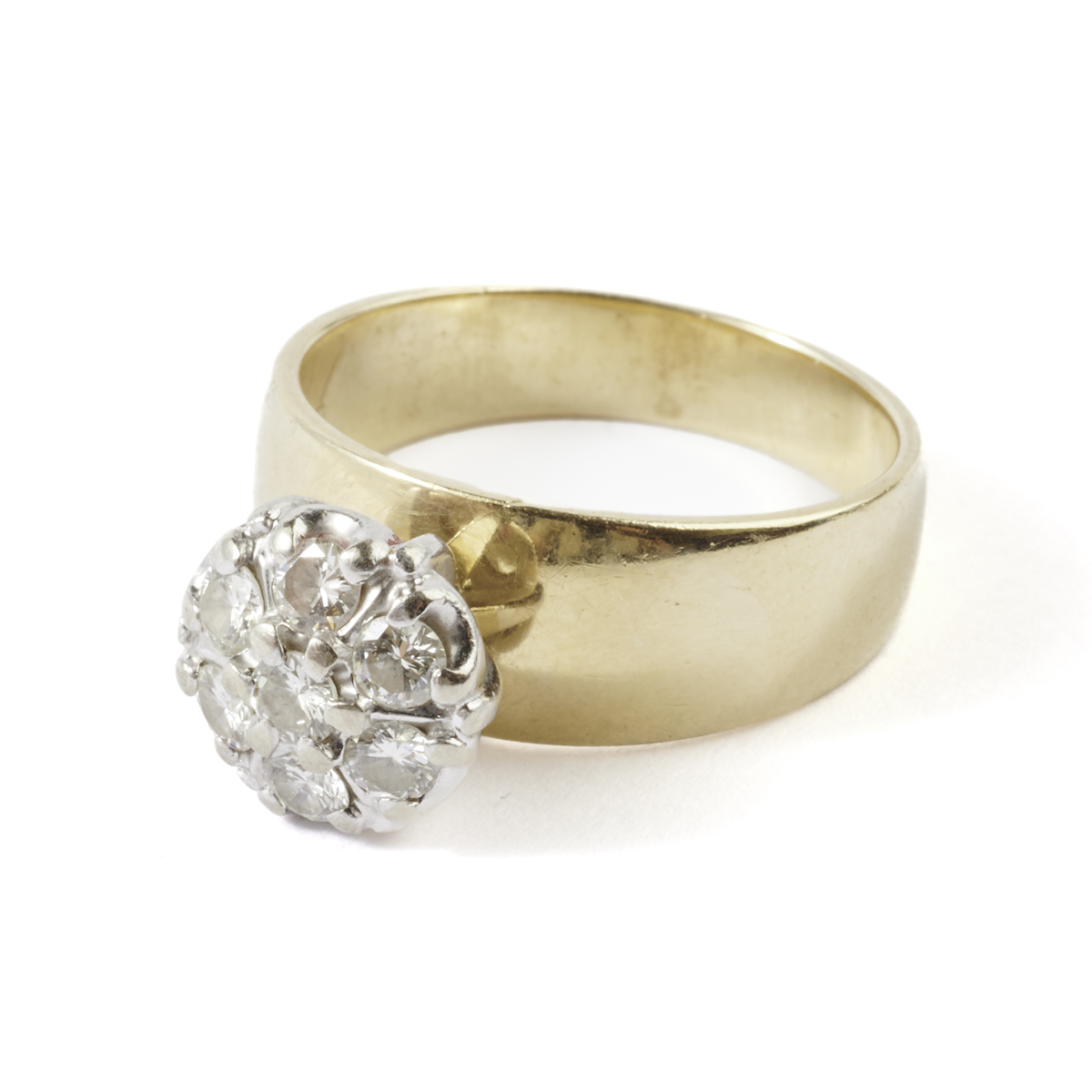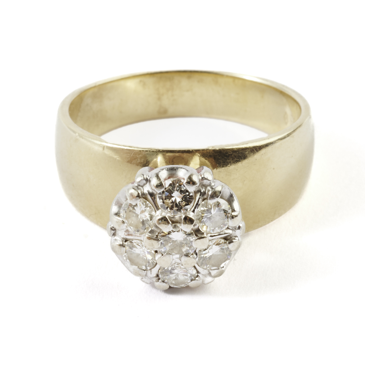Featuring seven full-cut diamonds weighing a total of approximately 0.50 cttw., set in a 14k yellow gold cluster ring mounting.