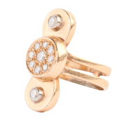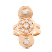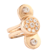 Featuring eleven full-cut diamonds weighing a total of approximately 0.40 cttw., set in a 14k yellow gold triple circle motif mounting measuring approximately 26 mm in width.