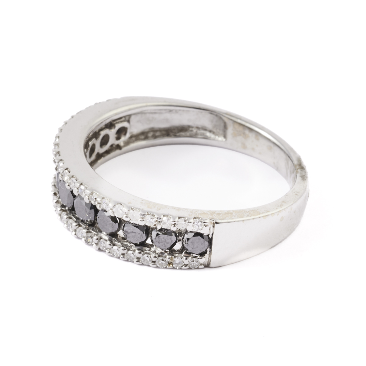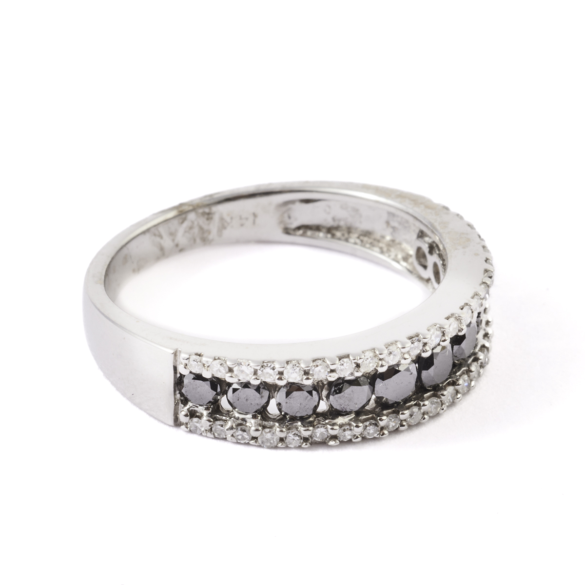 Featuring fifty-five round-cut black and near colorless diamonds weighing a total of approximately 1.15 cttw., set in a 14k white gold mounting.