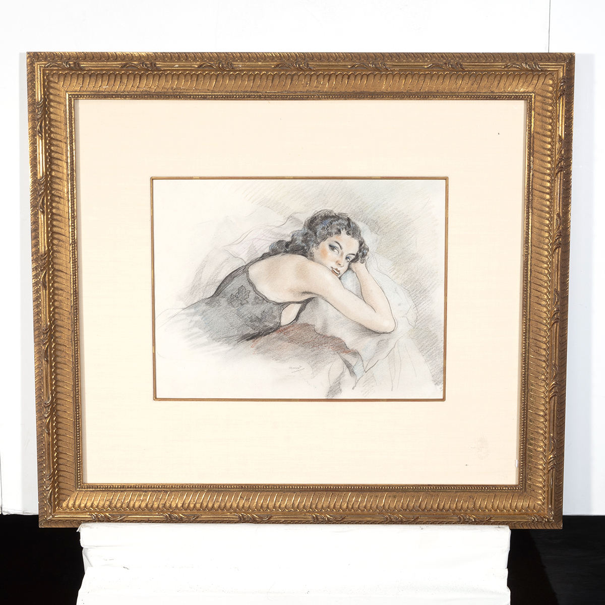 Condition: Toning, wear to edges, minor creases, small pinhole lower right corner, and slight buckling. Verso is taped to backboard on upper edges, and slight foxing.