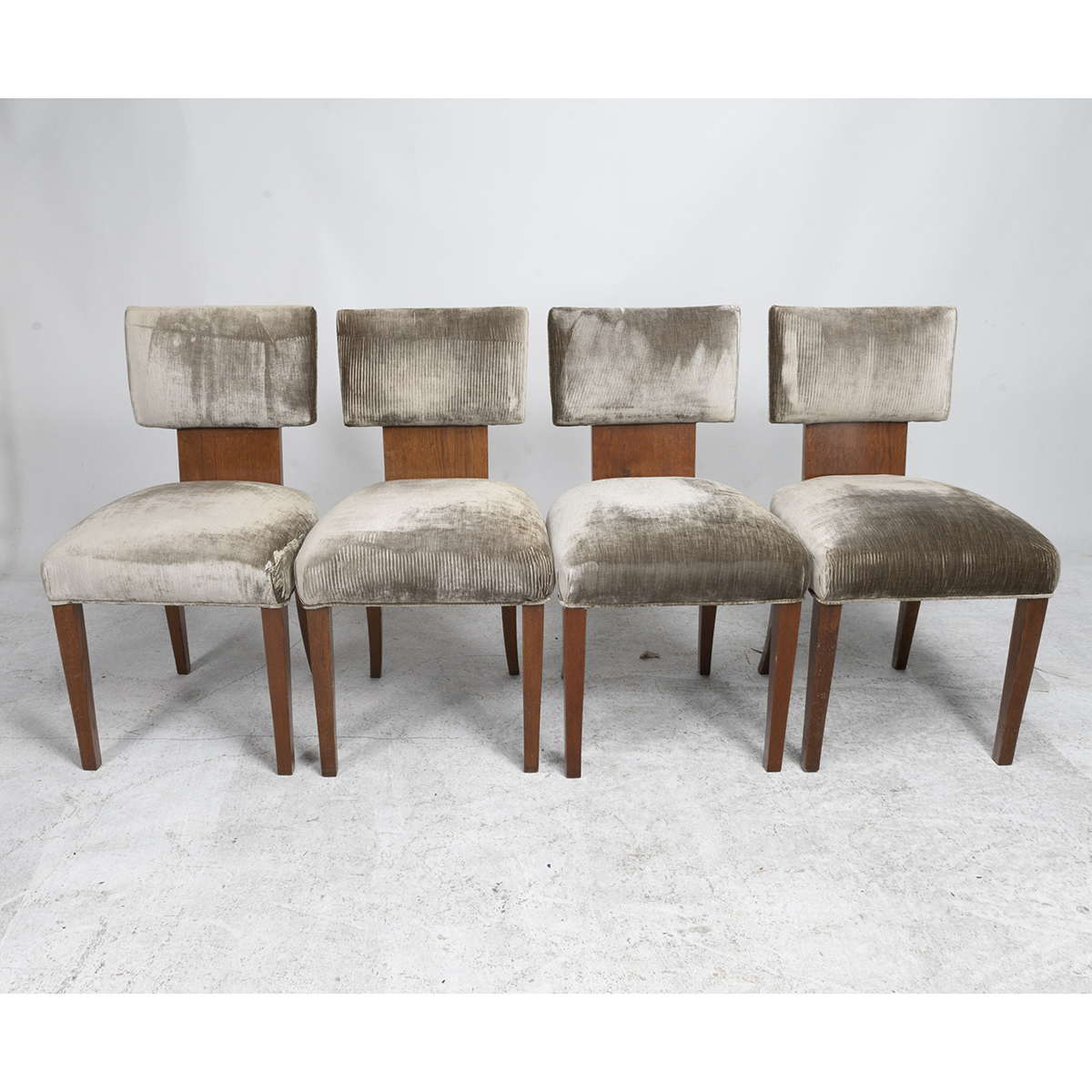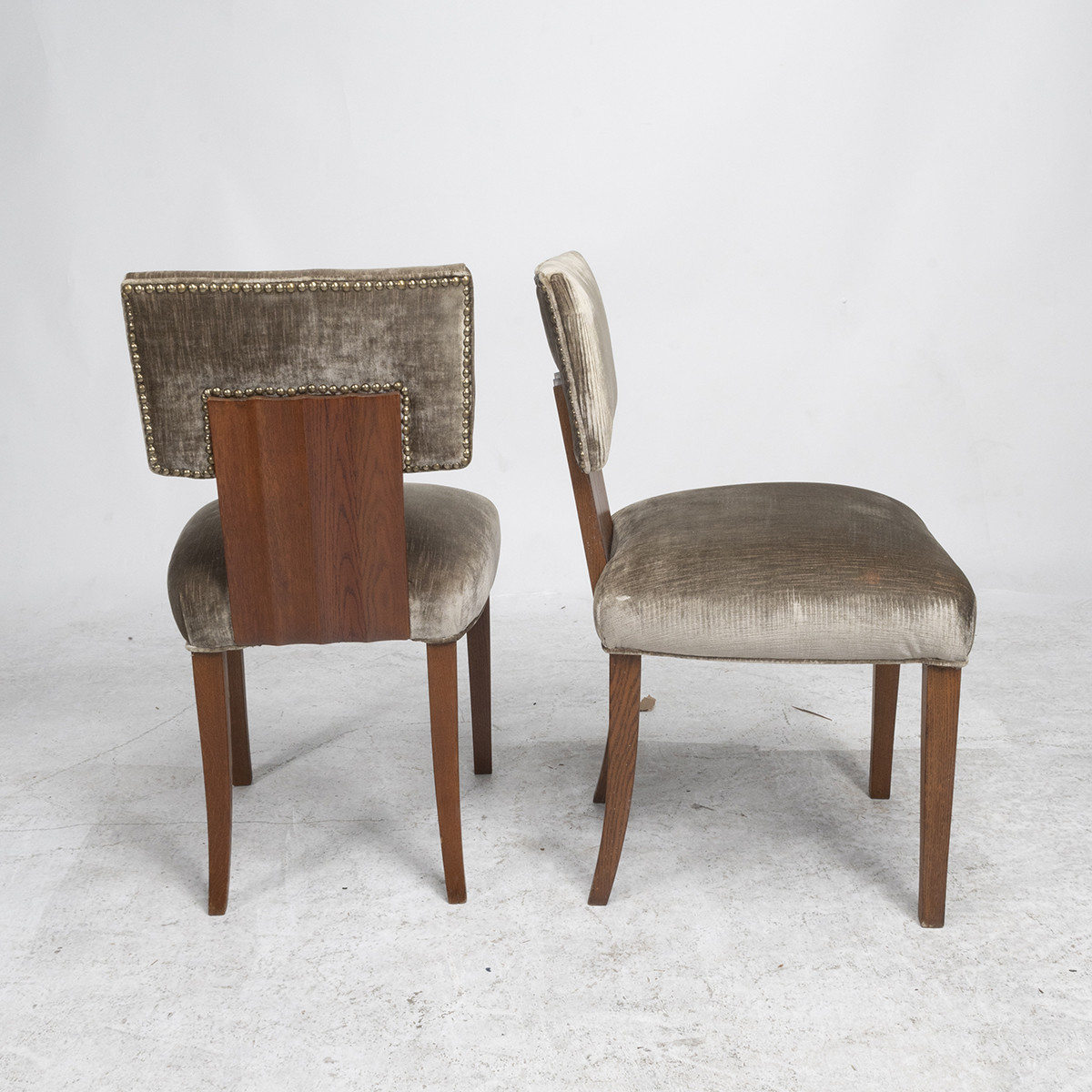 Pale green velvet upholstered seats and backs, the seat rail reverse with fluted carving.