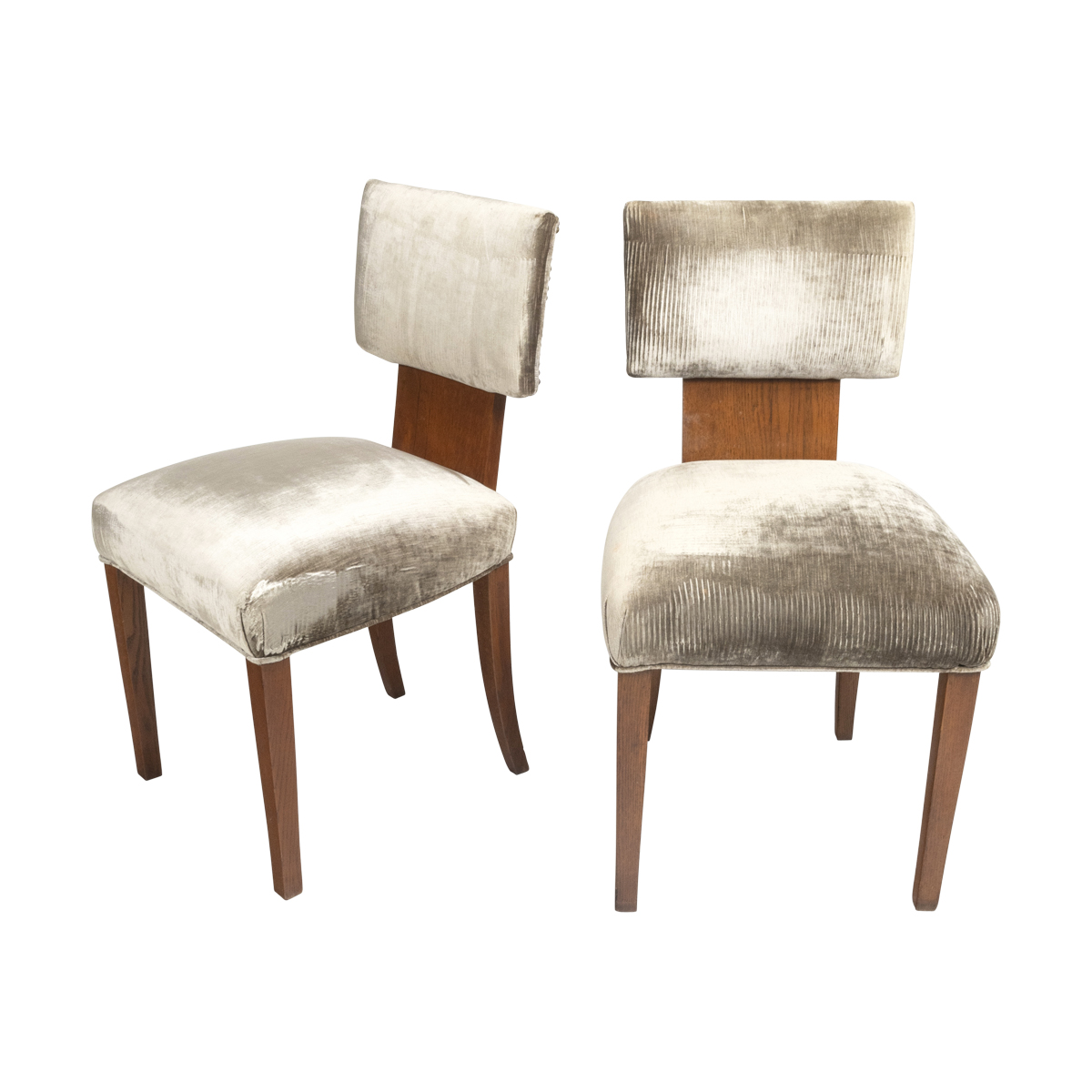 Condition: Some fading and wear to upholstery, several bleached spots. Minor surface wear to frames, some scuffs to legs.