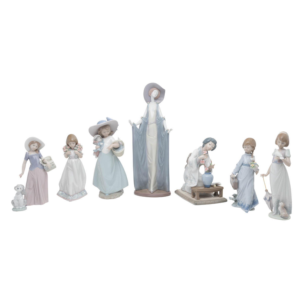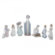 Comprising 1428 Afternoon Tea, 4840 Girl Decorating Flowers, 1362 Its a Picnic, 7604 School Days, 7611 Summer Stroll, 7603 Spring Bouquets, 6489 Tailor Made, 7685 Poodle Puppy 1428, 6489, 7611, 7603 with boxes included.