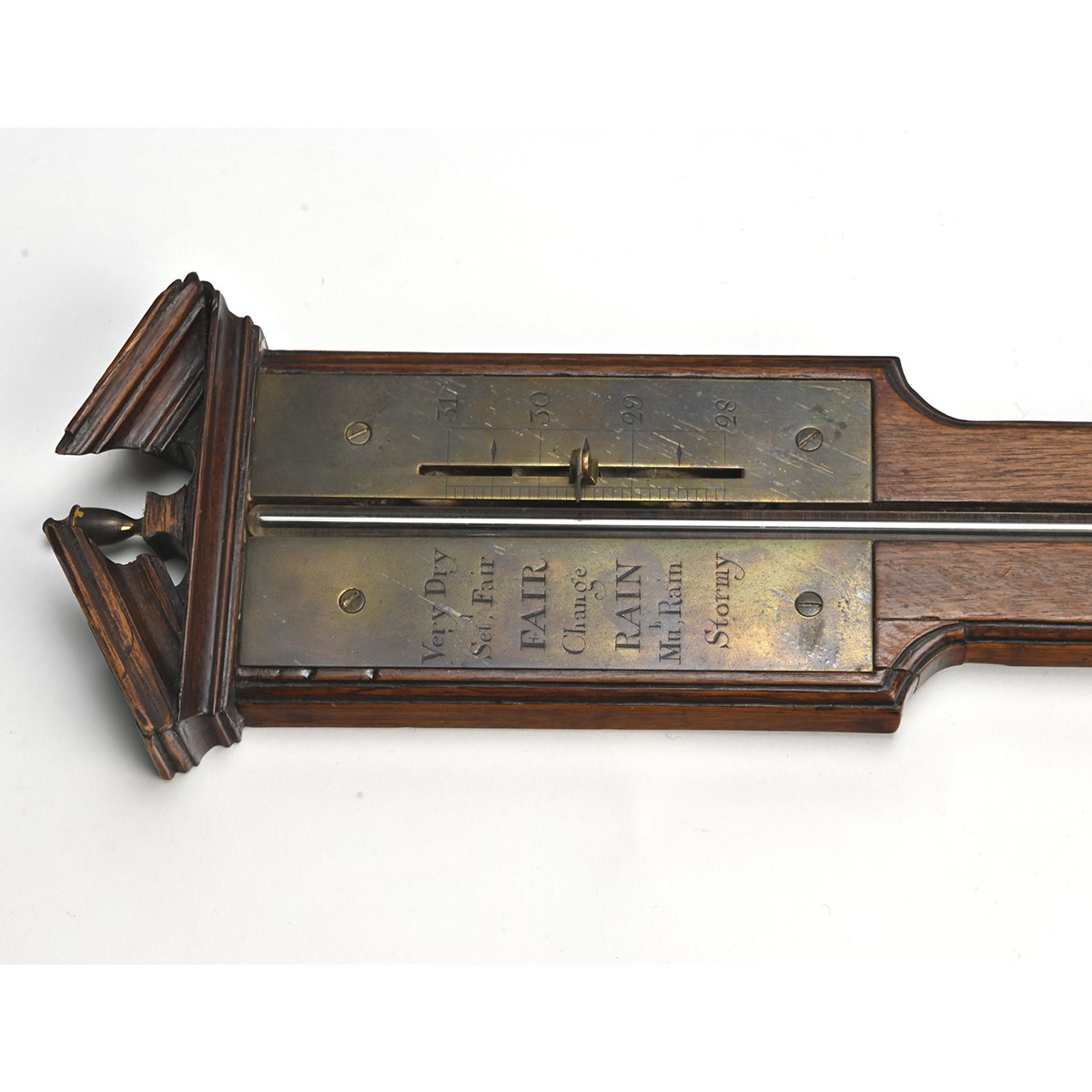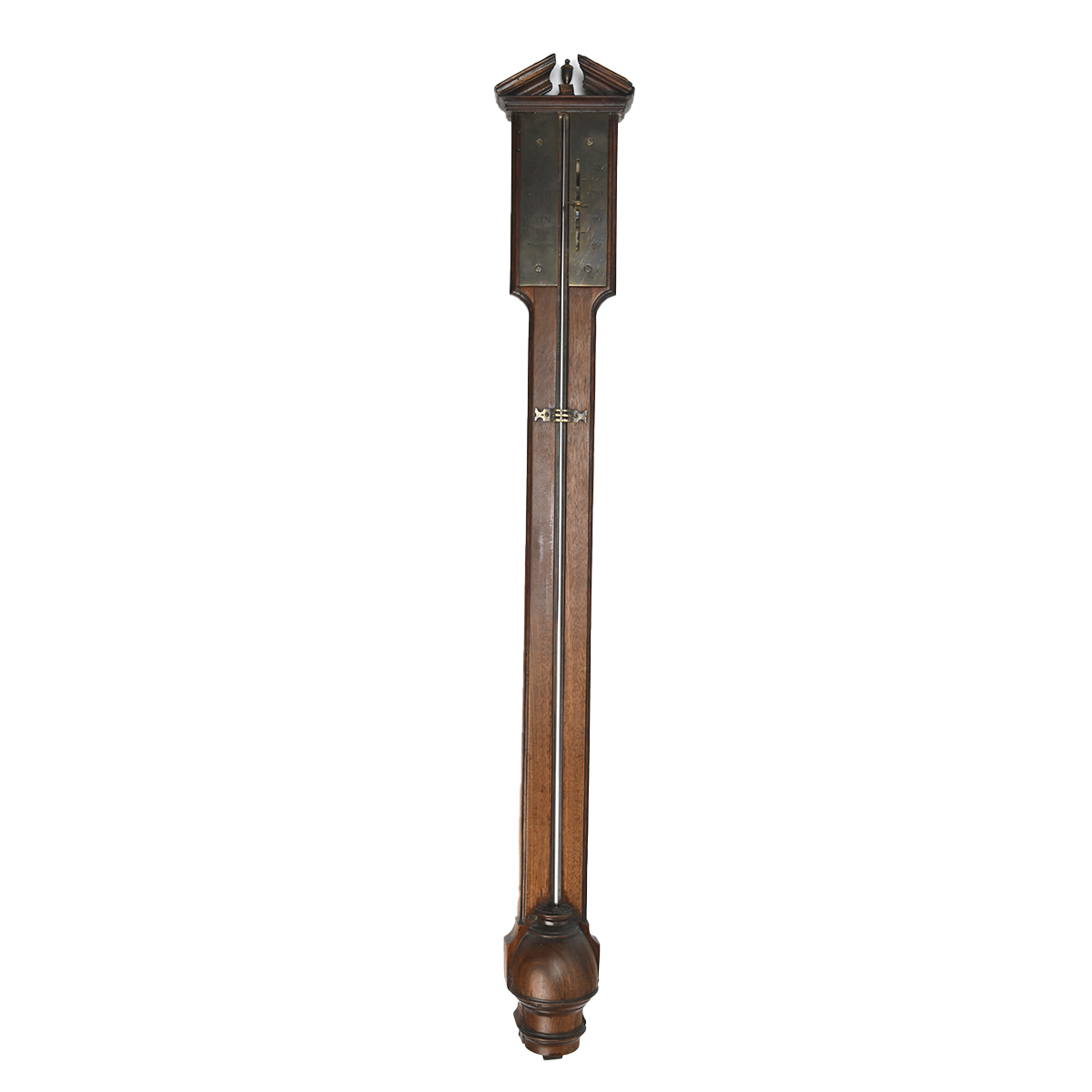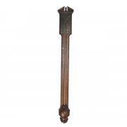 Condition: Has not been tested, working order is not guaranteed. The mercury is not easily accesible. Patina to brass elements. Some wear to the wood case including repairs to cracks.