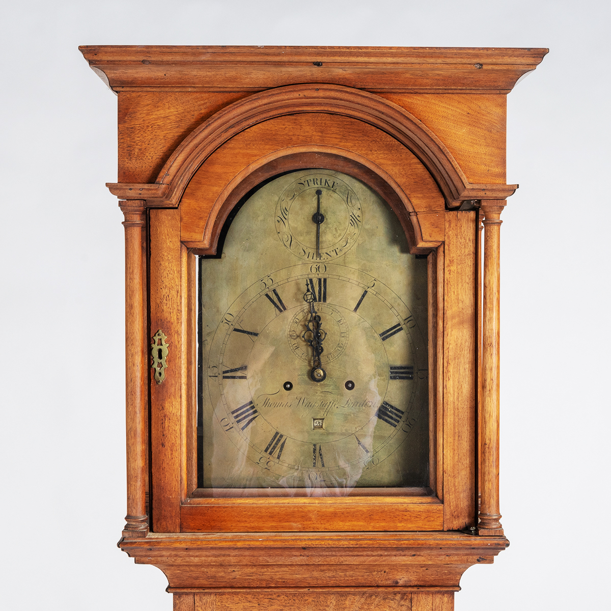 The brass dial with Thomas Wagstaff London.