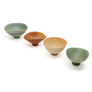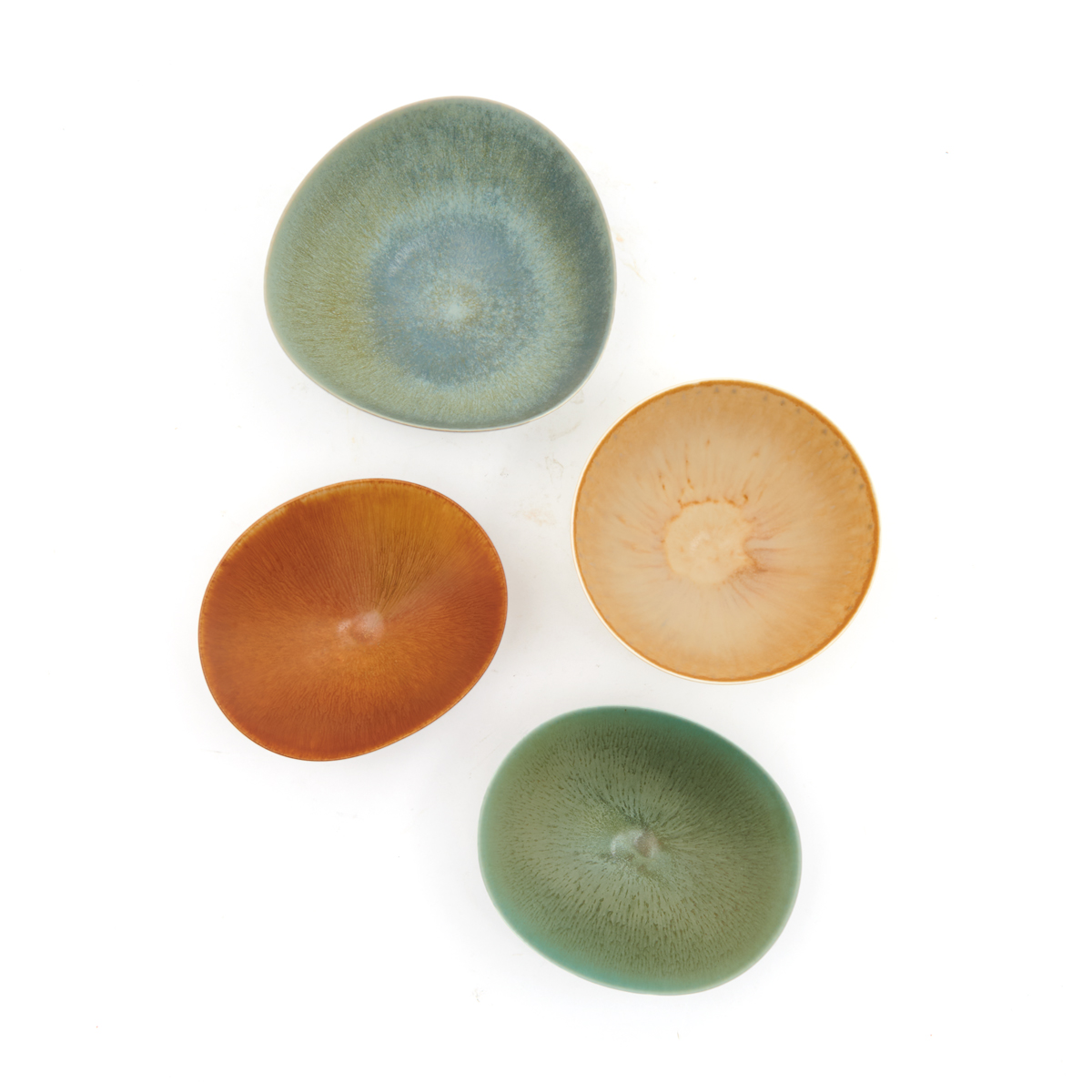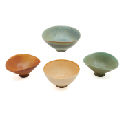 Berndt Friberg (Swedish, 1899-1981) comprising pale green glaze bowl, light brown to eggshell glaze bowl, ocher glaze bowl, pale blue glaze bowl.