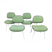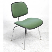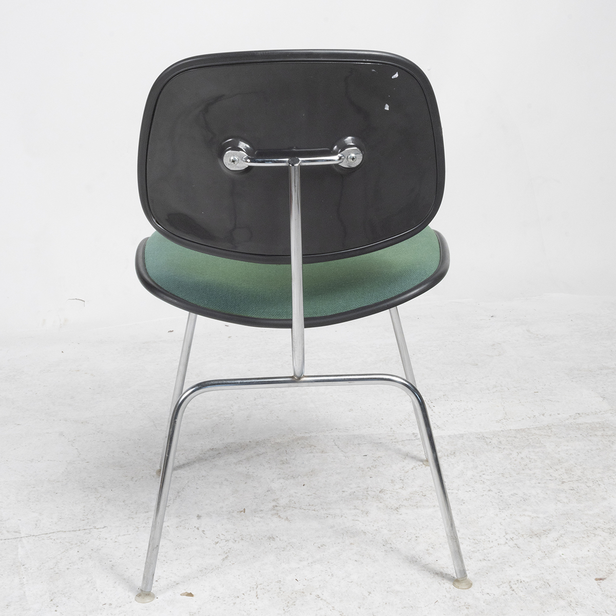 Green upholstered backs and seats, black plastic edges, chrome finish legs.