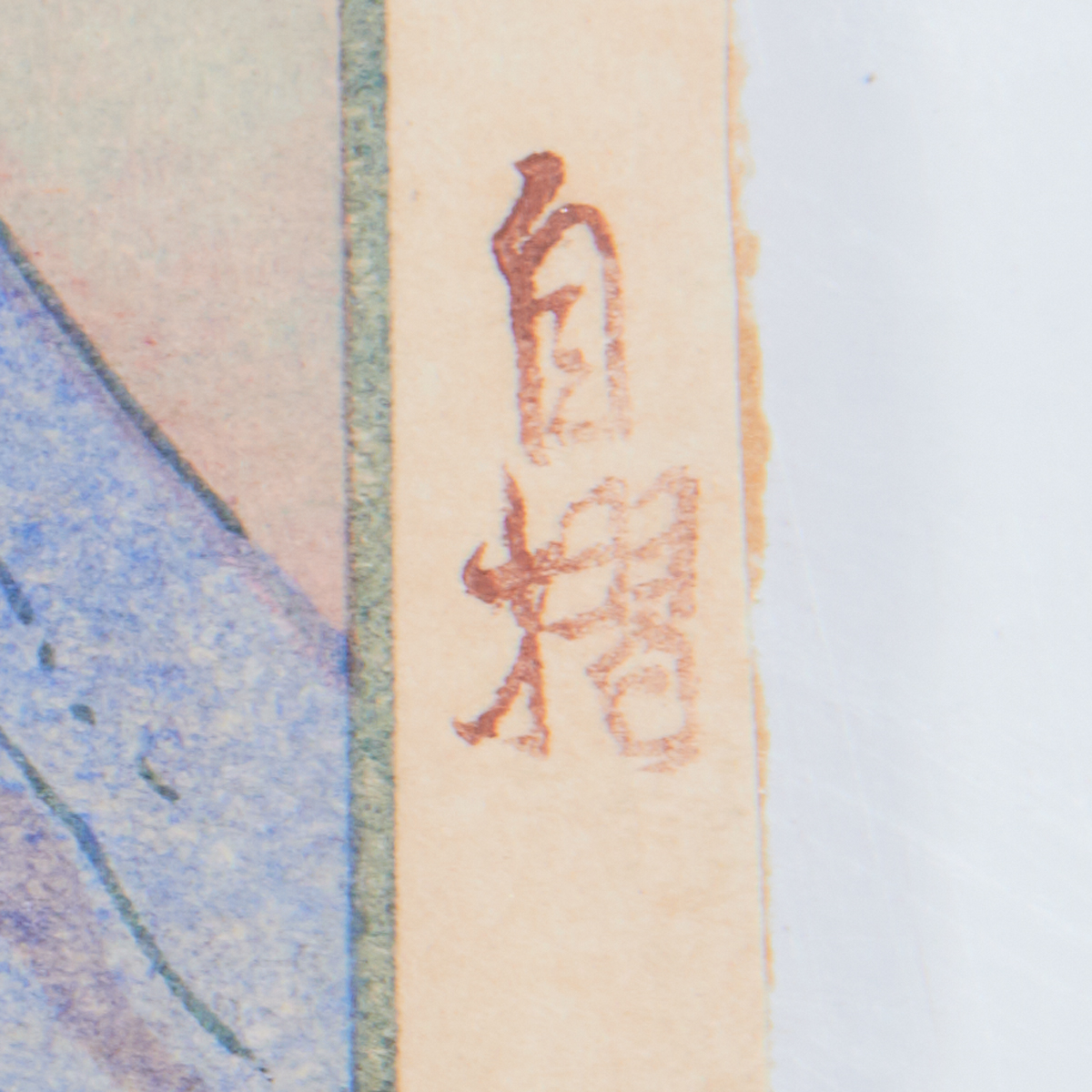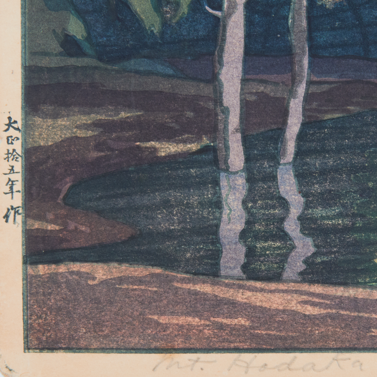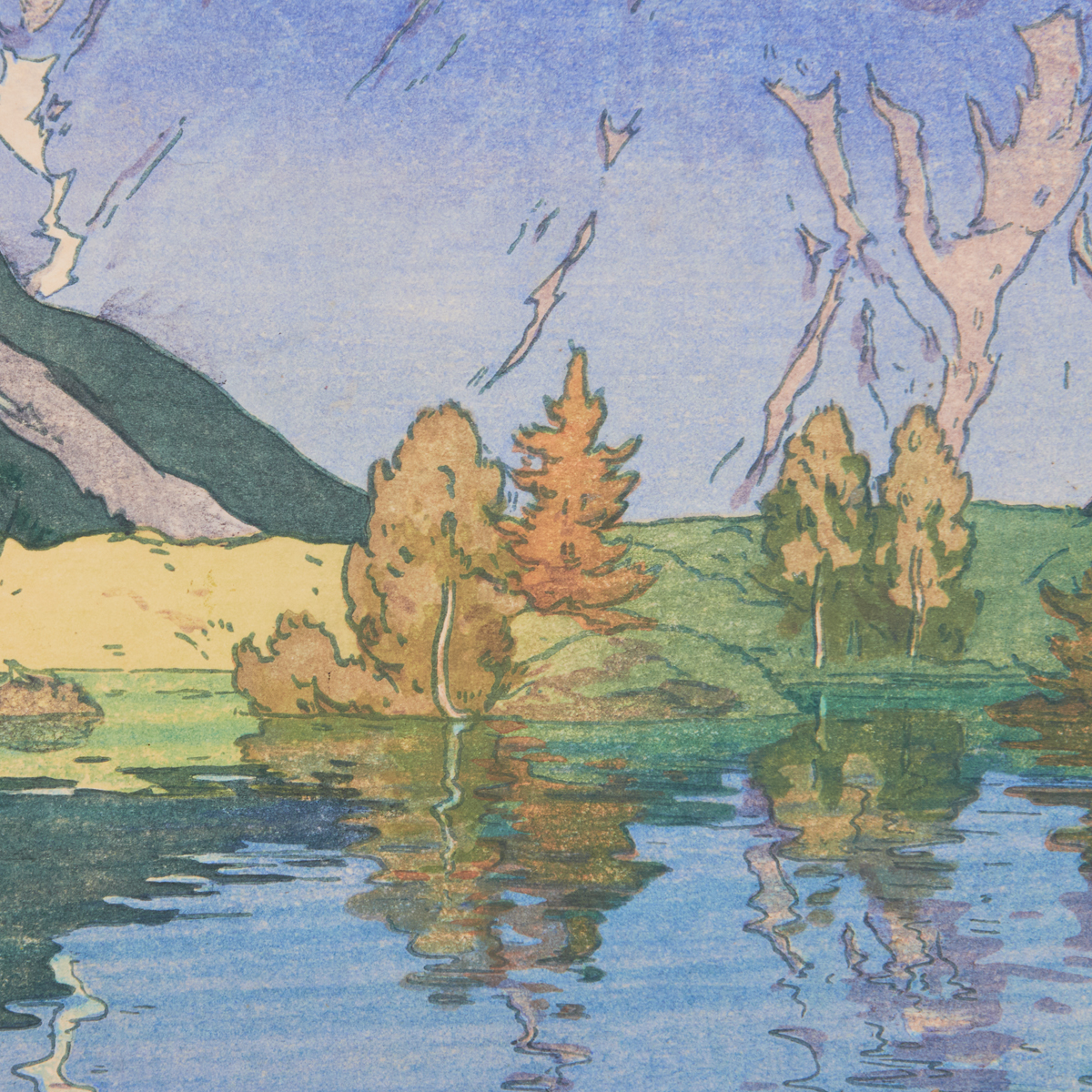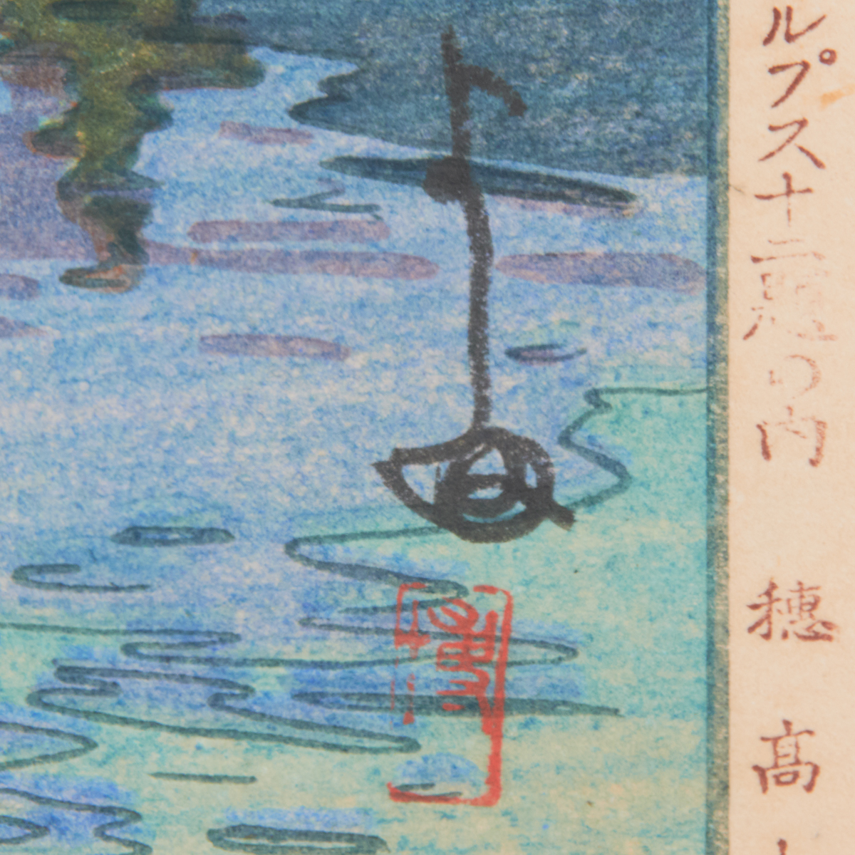 From the series, Nihon Arupusu juni dai no uchi (Twelve scenes in the Japan Alps), signed Yoshida, in pencil in Roman script on right margin, sealed, Jizuri (self-printed) on the right margins, title on the left bottom margin, including artist stamp on the right lower corner.
