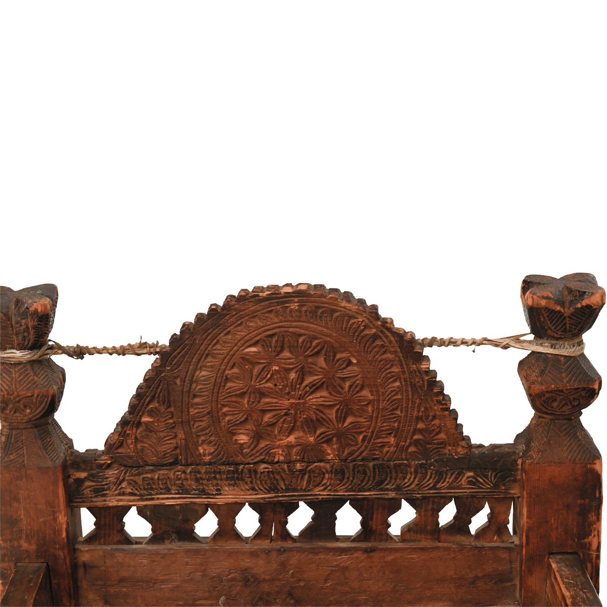 Condition: Significant wear and loss throughout. Carved panel to headboard is loose.