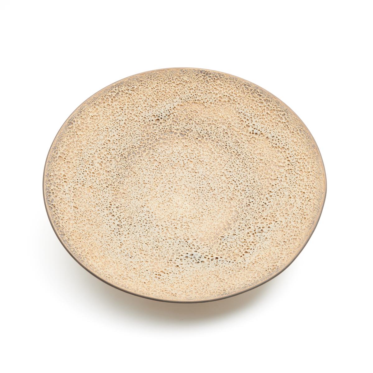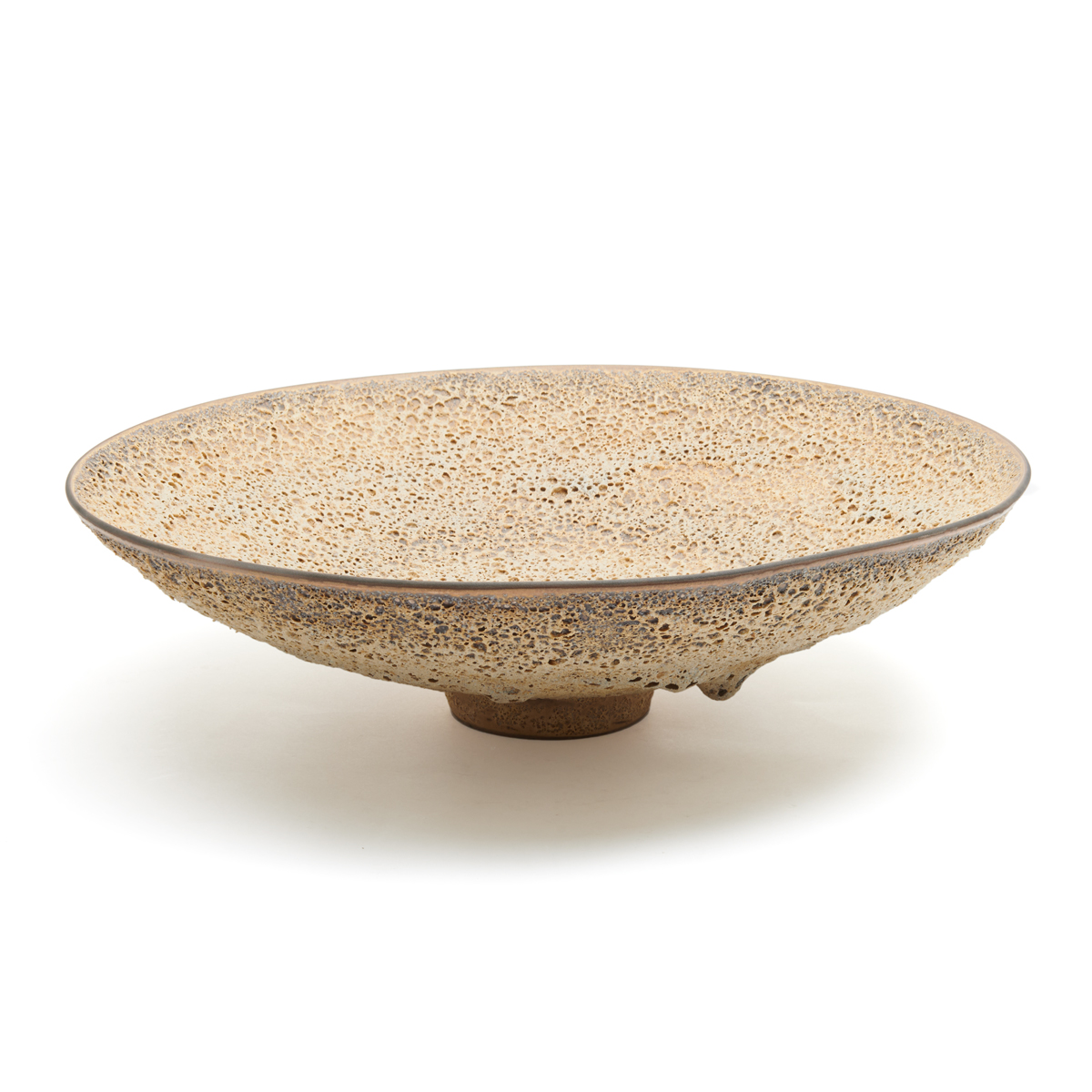 James Lovera (American, California 1920-2015). Shallow round bowl on round foot, cream lava glaze.