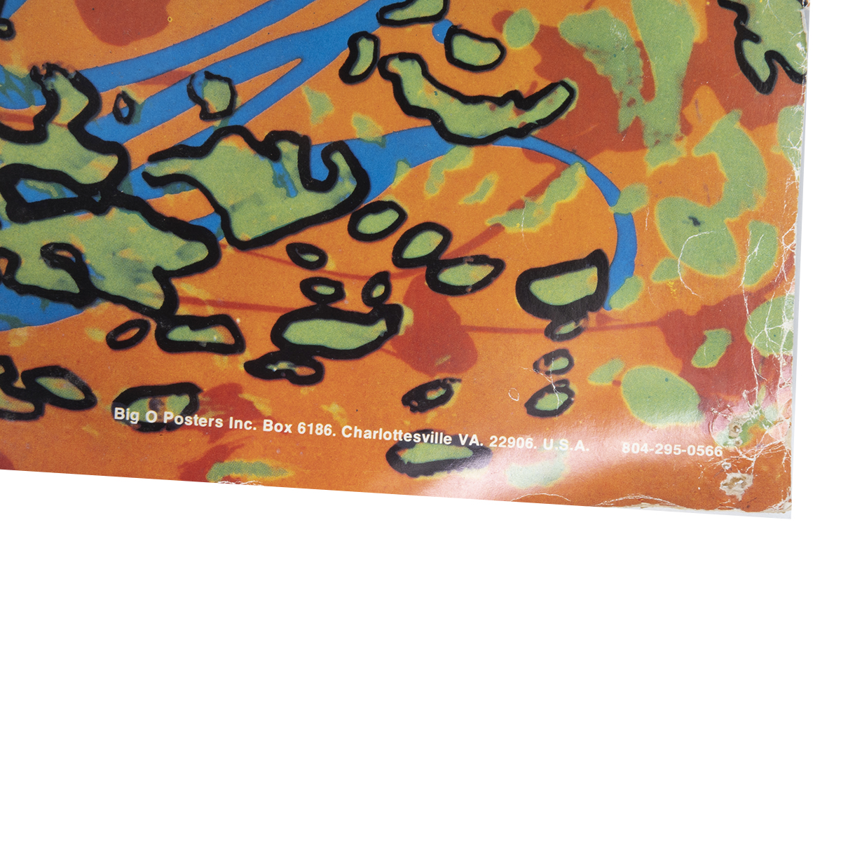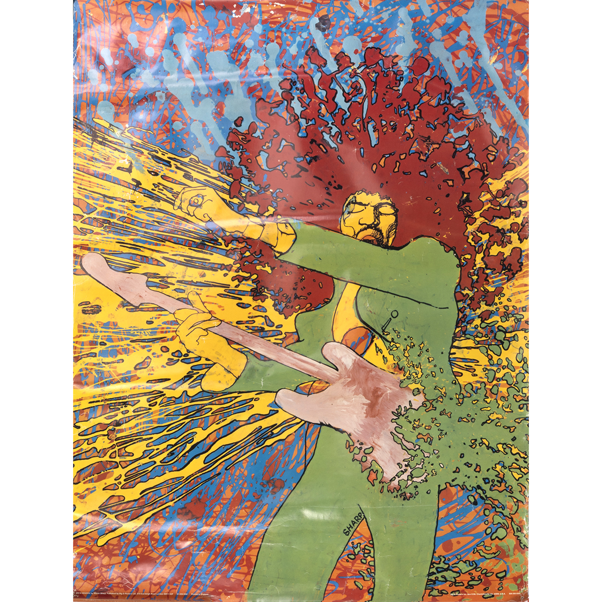 MS16 HENDRIX by Martin Sharp Published by Big O Posters Ltd. 219 Eversleigh Road London SW11 5UY 01-228-3392 Printed in England / Big O Posters Inc. Box 6186 Charlottesville VA. 22906 U.S.A.804-295-0566 along the bottom in white lettering.