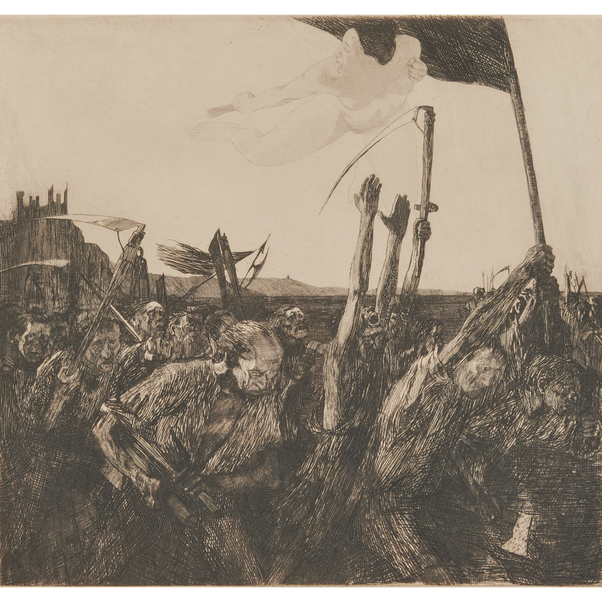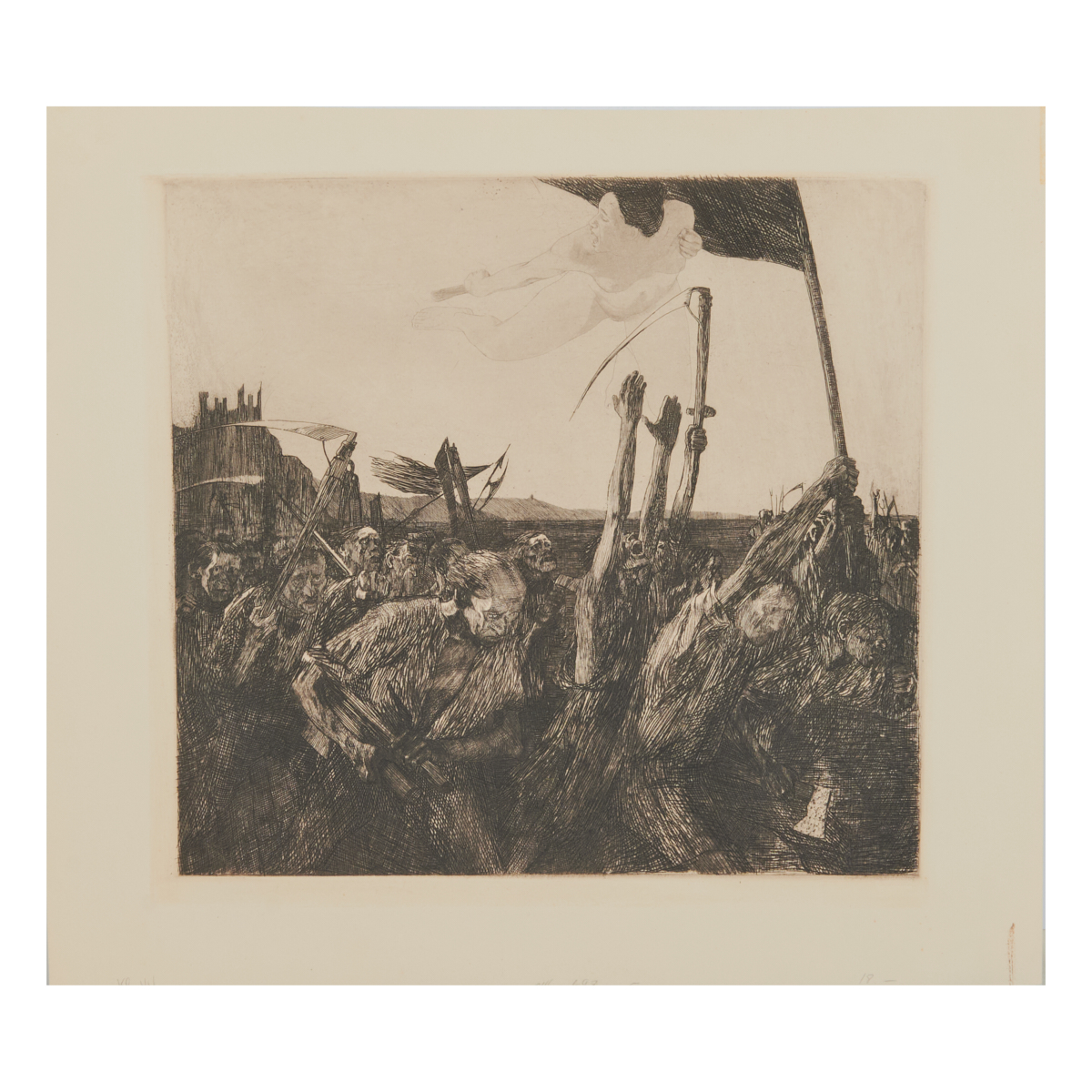 gallery label at recto: Revolt KL. 44 Original Etching Restrike.