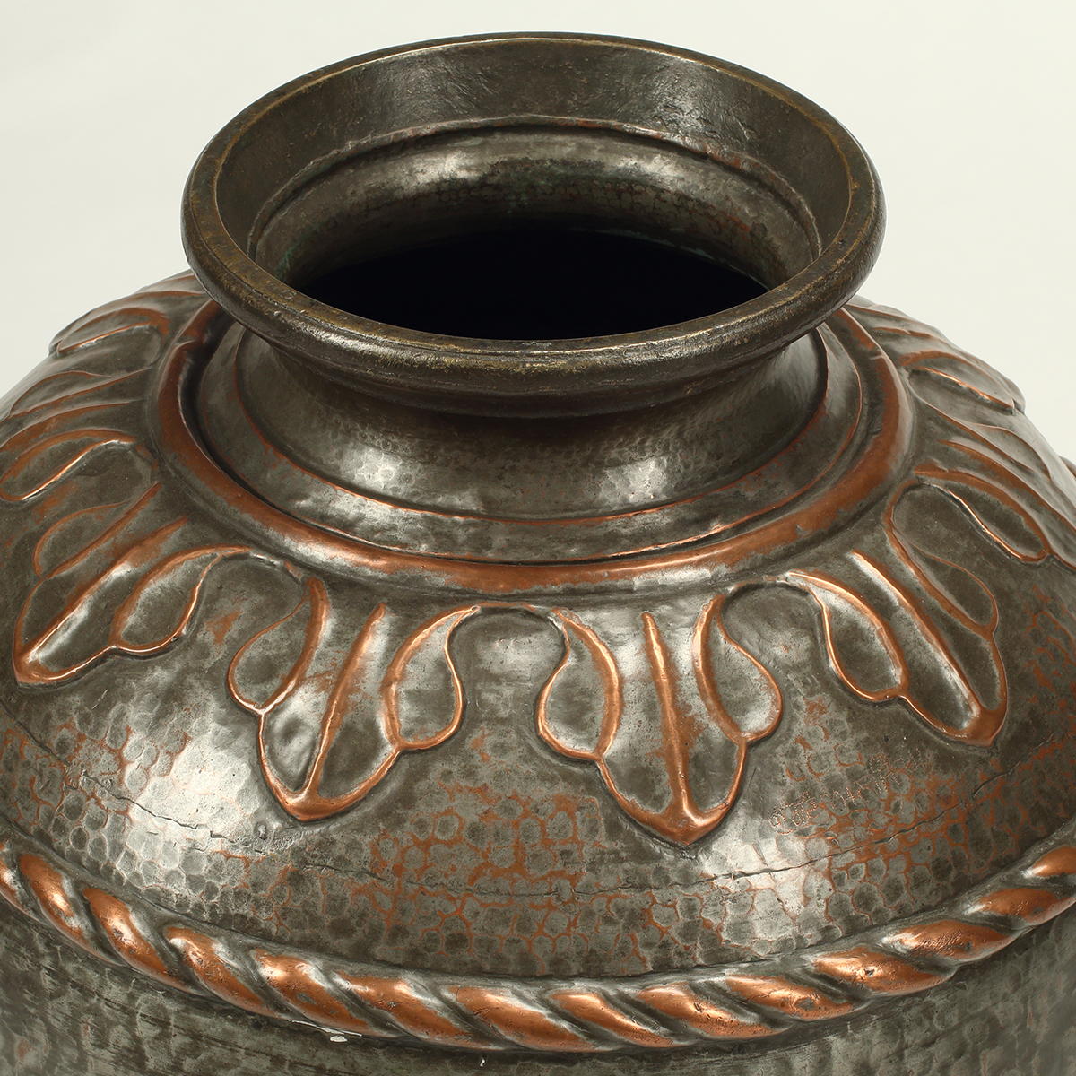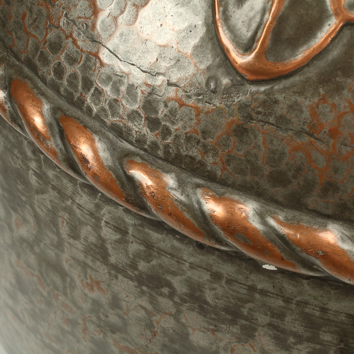 Condition: Horizontal seam around the top, possible repair. Patina and surface wear throughout.