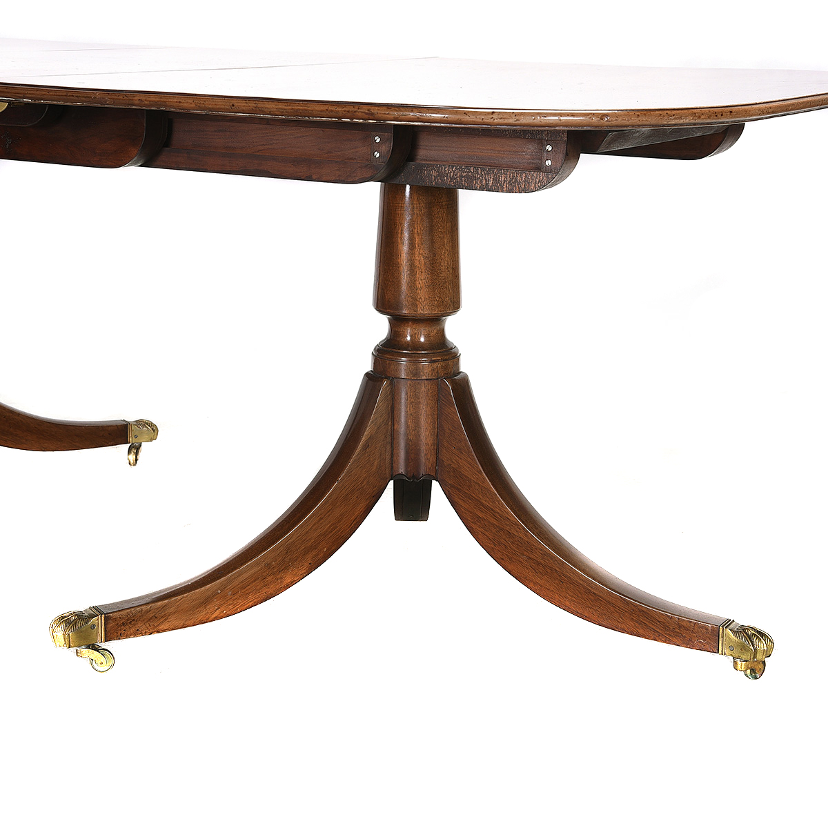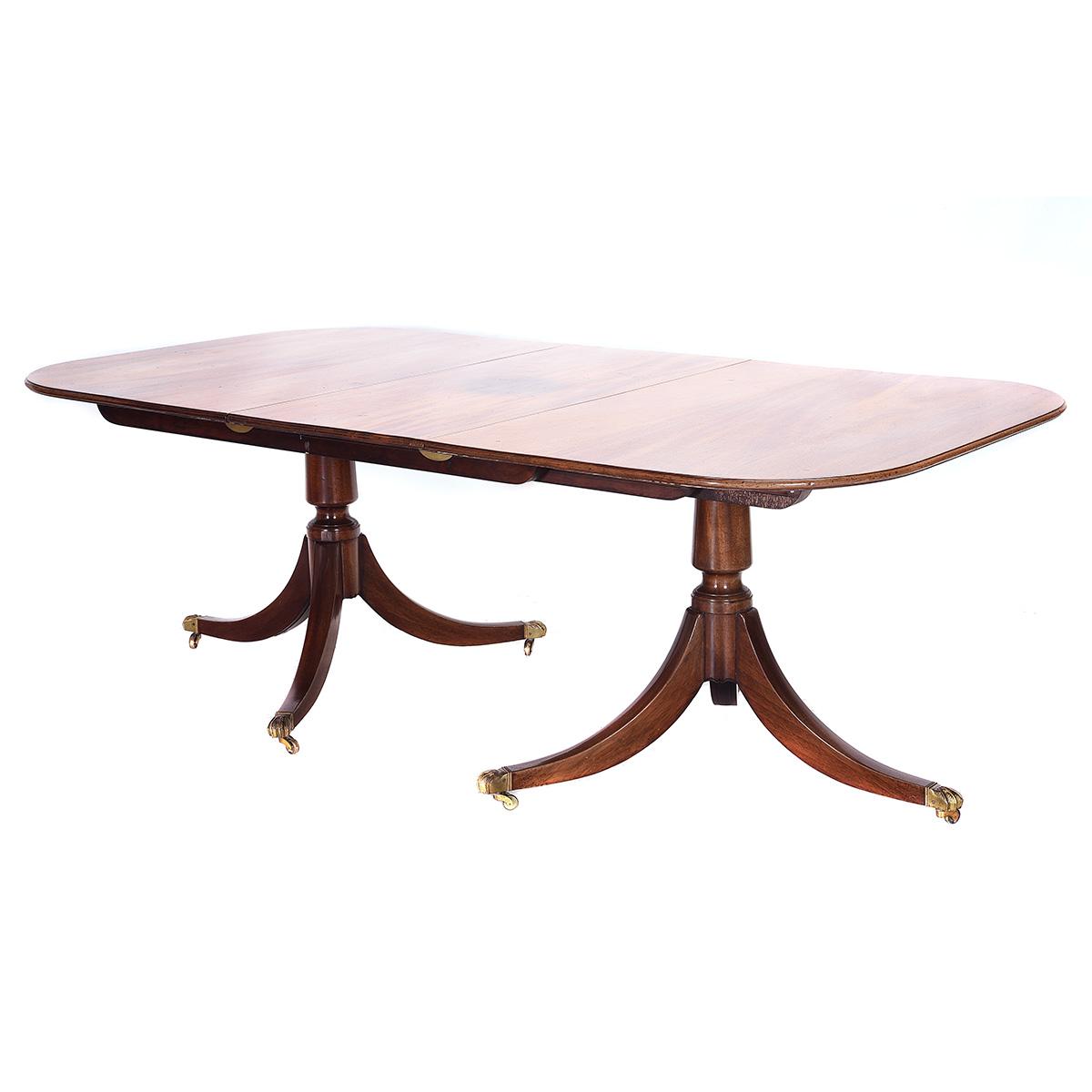 Molded edge, brass-capped claw feet on casters. Two leaves.