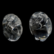 Approximate dimensions: Pigeon 3 1/2 inches high, swan 2 1/4 high x 3 3/4 inches diameter, chirping bird 3 inches high, owl 2 1/2 inches high, mouse 2 3/8 inches high..