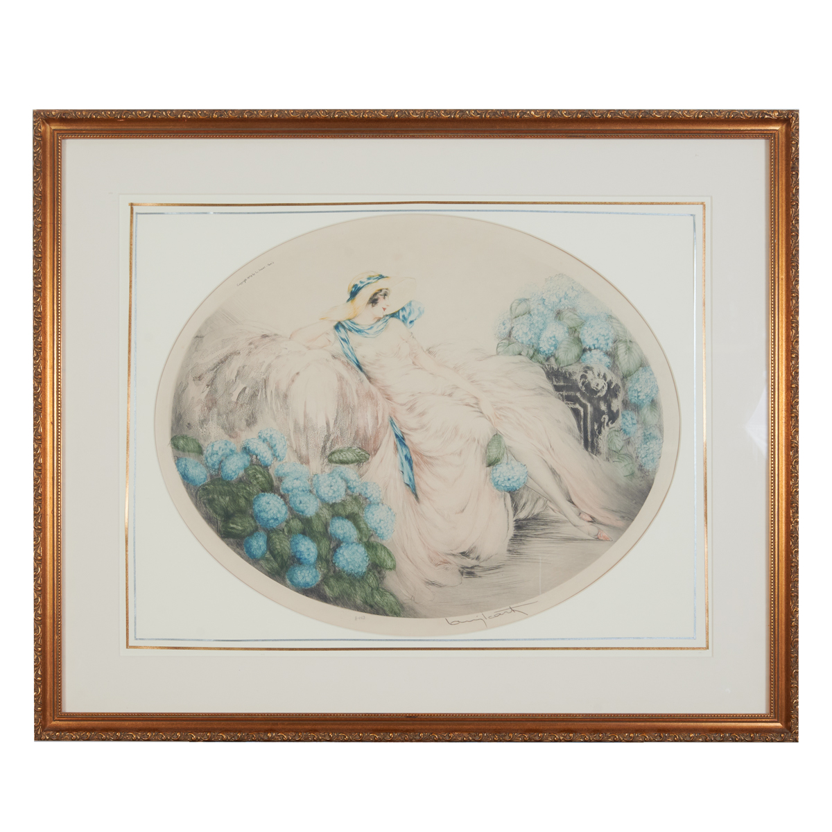 blind stamp at lower left, along with A443 in pencil Copyright 1929 by L. Icart, Paris upper left.