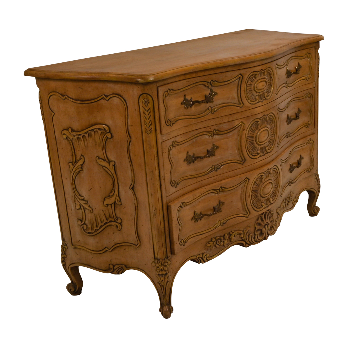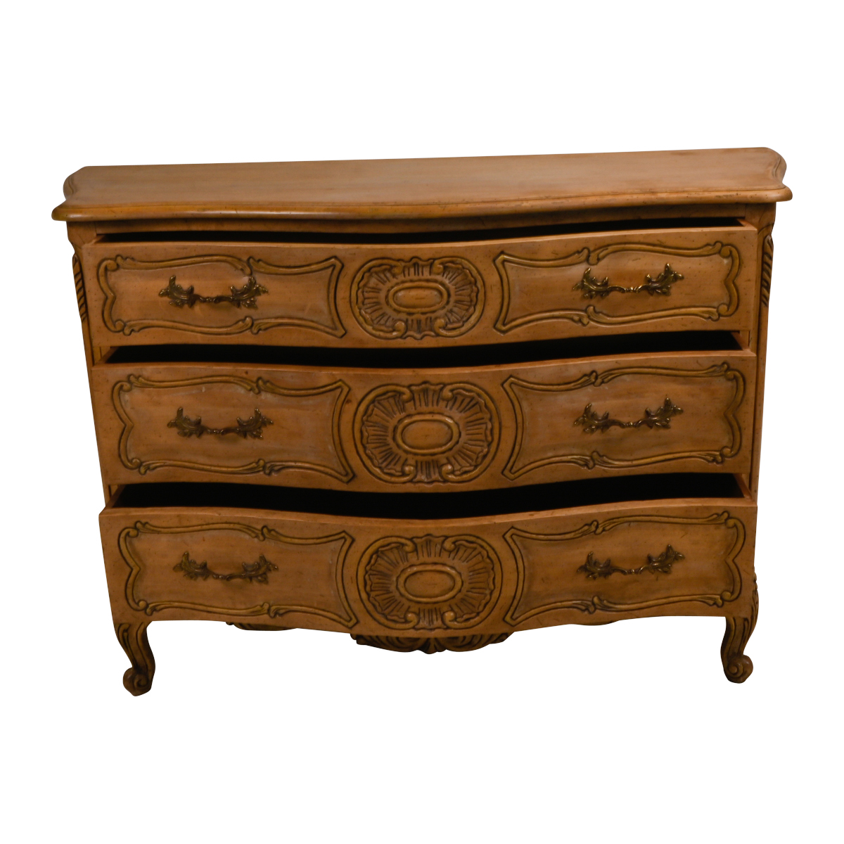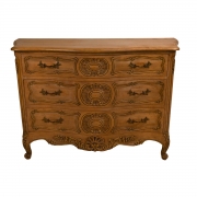 Bleached walnut finish, three drawers, shell carved apron, scrolled legs.