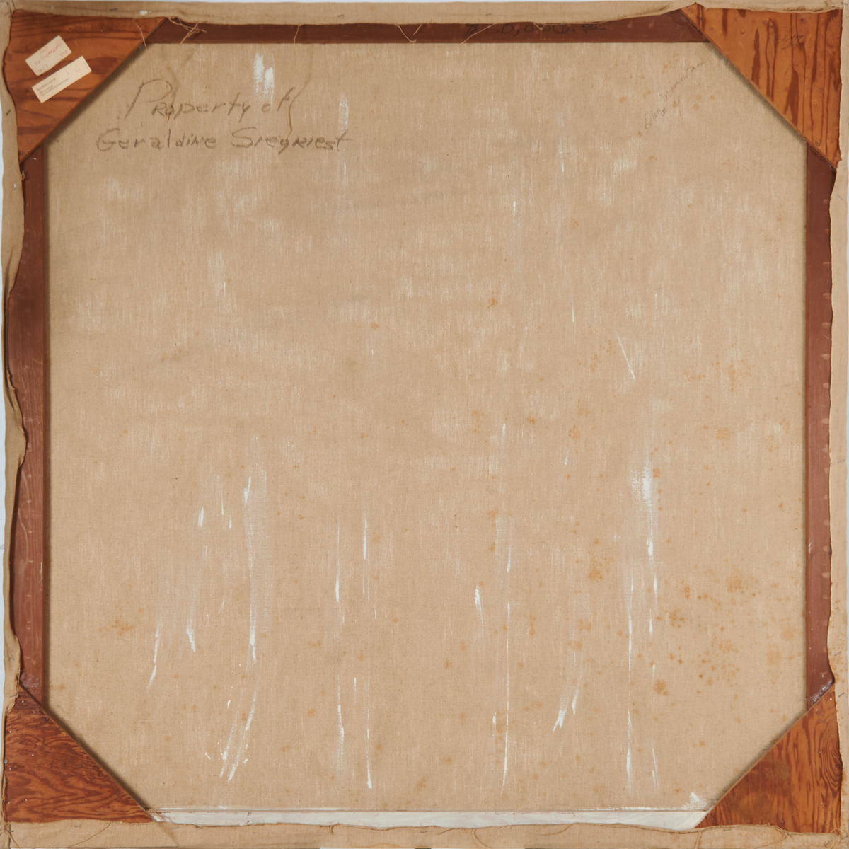 titled on canvas verso two labels verso of artwork information.