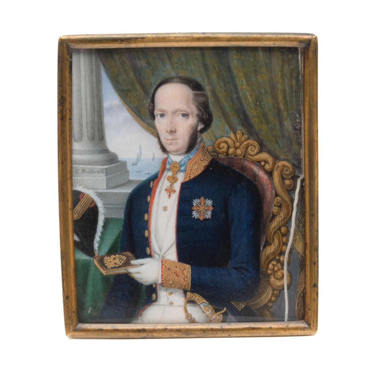Federico Maldarelli (Naples, 1826-1893). Member of the Constantinian Order of Saint George, Kingdom of Two Sicilies. Probably a prominent member of the order, and a captain of a merchant ship. In gilt brass frame.