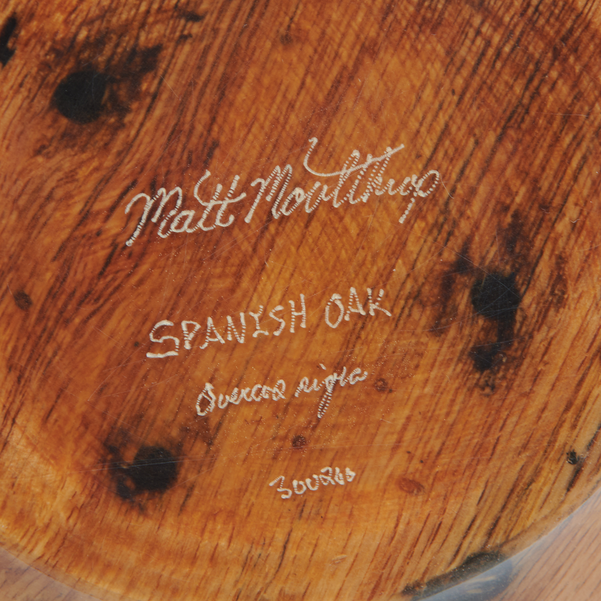 The underside incised with Matt Moulthrop / SPANISH OAK / scientific name / 300200.