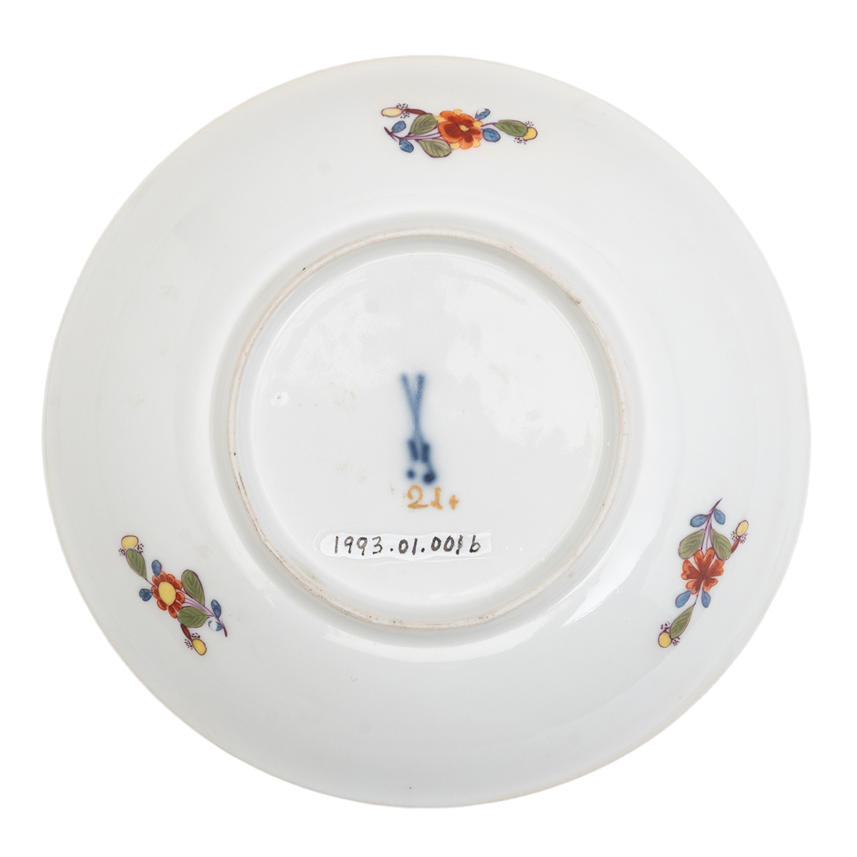 Both with blue underglazed crossed swords to the undersides, also with museum catalog numbers.