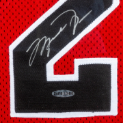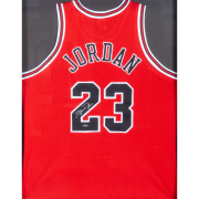 Red bulls jersey signed with silver marker, in black frame signed in 1998 Michael Jordans basketball camp.