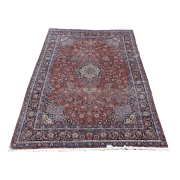 Condition: Minor losses to warp yarn. Pile with some minor wear and loss. Apparent subtle repair to center. Faint stain to corner.