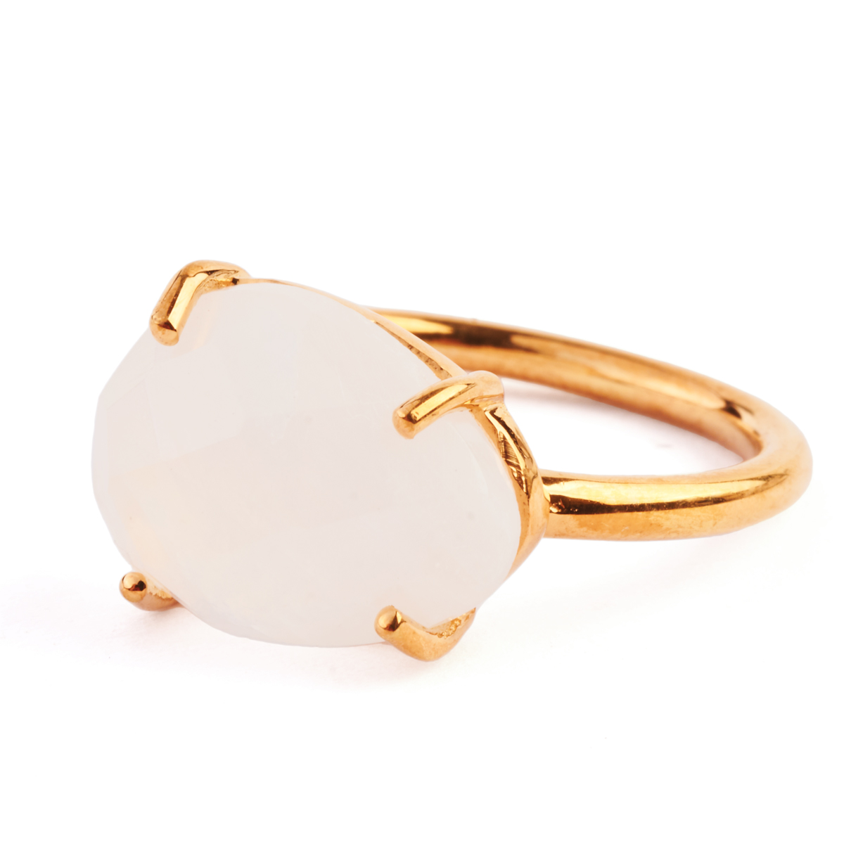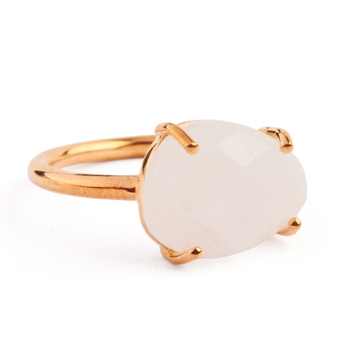 Featuring one egg shaped, faceted-top moonstone measuring approximately 13.9 x 10.7 mm, set in a vermeil mounting.