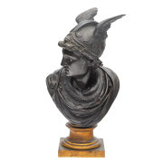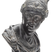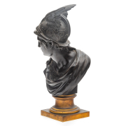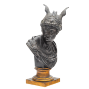 Ebonized bronze sculpture, Mercury wearing a winged helmet, on gilt metal pedestal base.