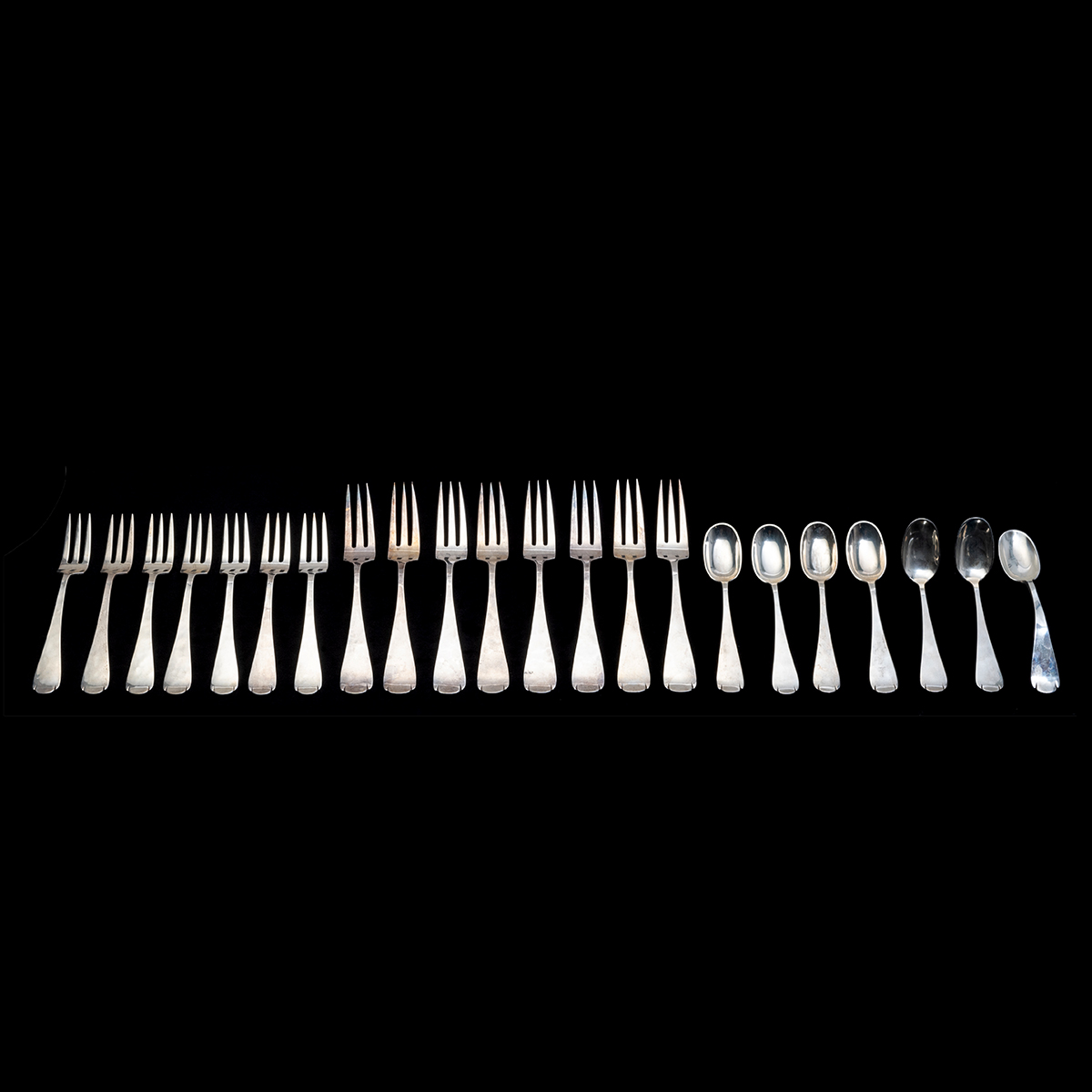 Comprising 8 place forks, 7 salad forks, 5 teaspoons, 2 small scoops.