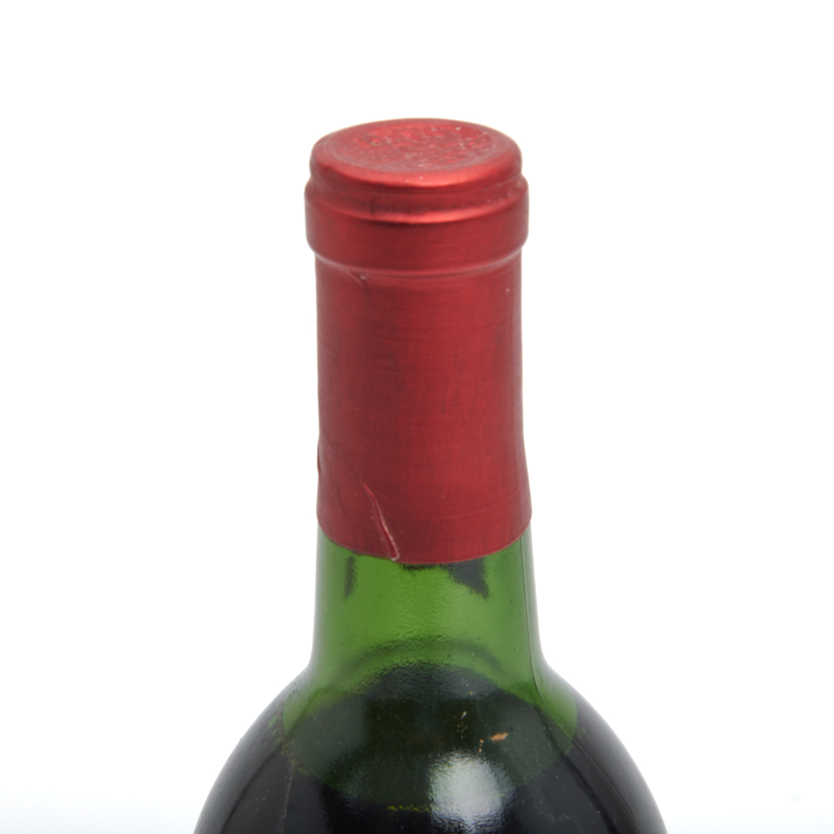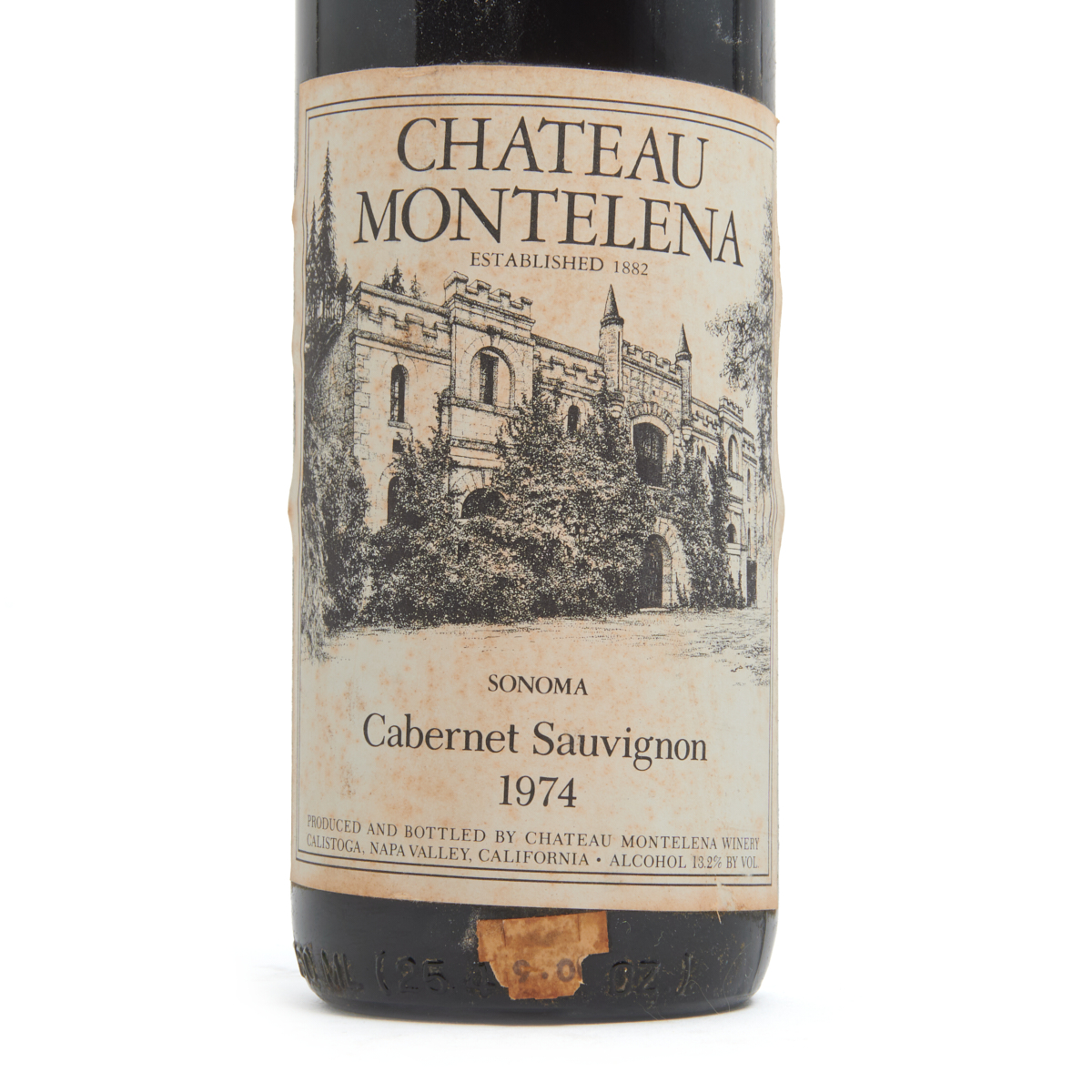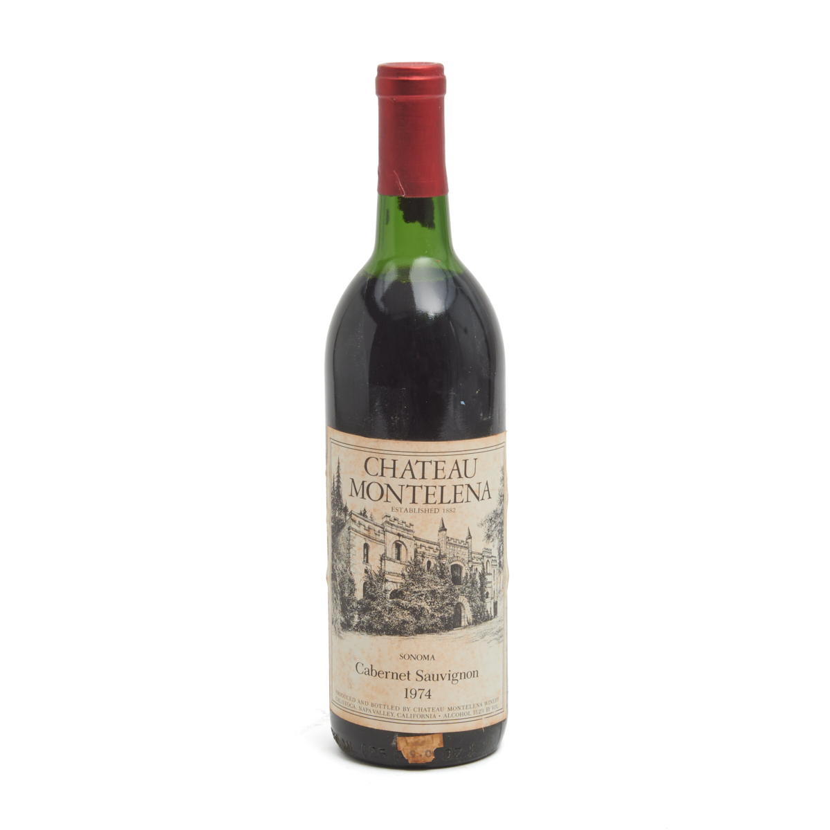 Condition: Capsule in good condition, with minimal wear and firm cork. Some residue buildup in neck. Approximately 2 cm of ullage. Some wear and discoloration to label.