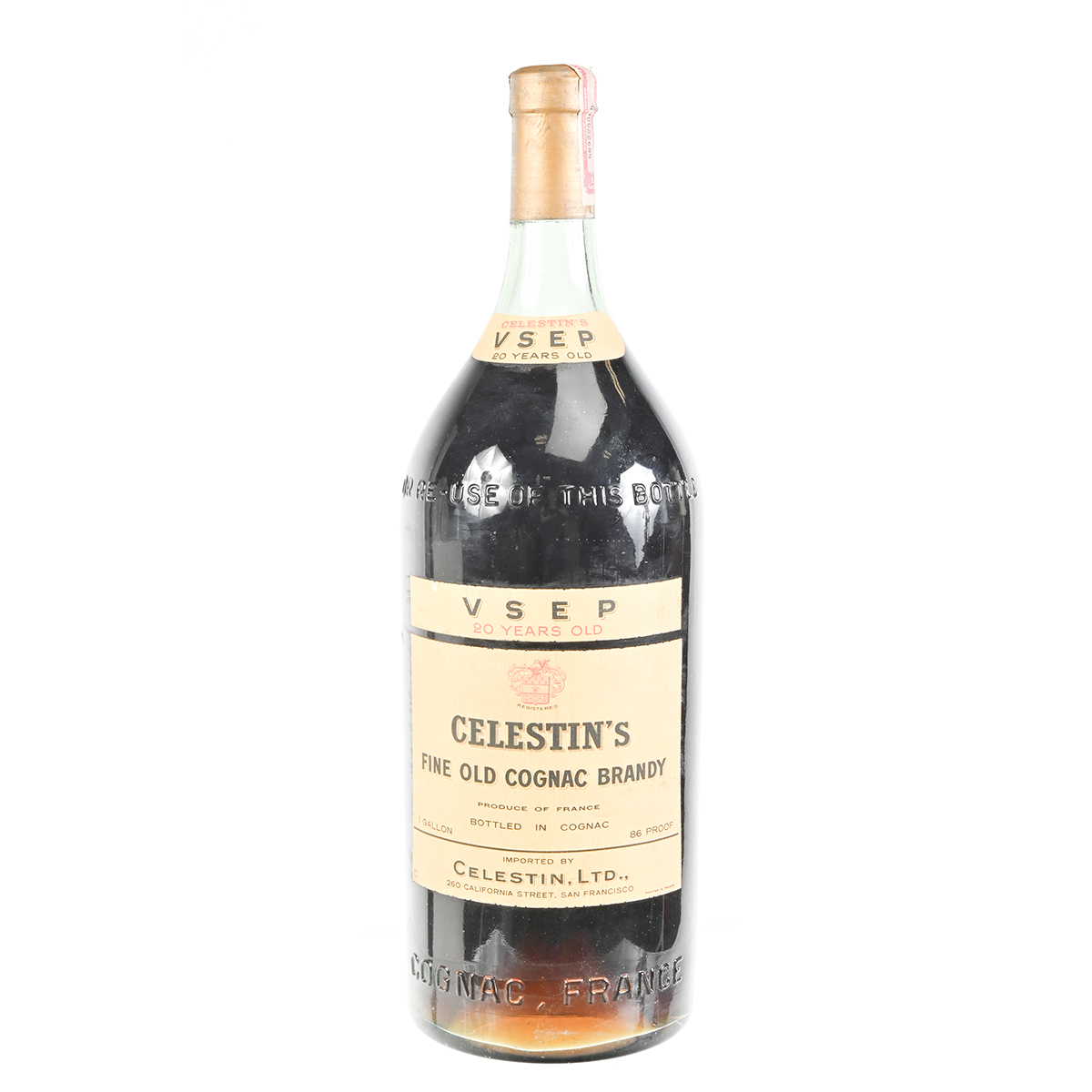 Condition: Minor wear to labels. High shoulder with approximately 2 1/8 between liquid level and capsule. Minor loss to gold foil coating on capsule, slight tear to edge of paper seal over capsule.